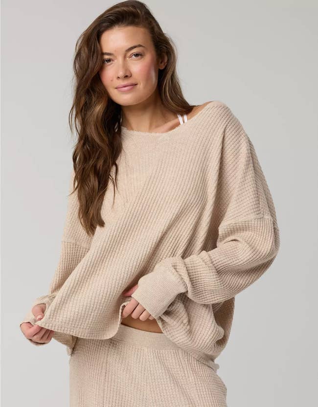 We hope you love our recommendations! While every product is independently chosen by our editors, BuzzFeed and our publishing partners may collect a share of sales or other compensation from the links on this page. You can read more about how our affiliate partnerships work in our Editorial Standards & Ethics Guide. Allow us to introduce you to your new closet MVPs. Unless otherwise specified, all sizes in this post are listed in women's. Promising review: “The fit is perfectly relaxed without being bulky, and it’s lightweight but still cozy. I love that it layers so easily over anything — sweats, leggings, or even jeans. It’s one of those pieces you can throw on and instantly look put together while staying comfortable. I’ve worn it nonstop at home and out running errands. So good, I’d buy it again on its own.” —Sonia Price: $50.95 (originally $59.95; available in sizes XXS–XXL and eight colors) Promising review: “This waffle-knit shirt is a cozy dream! The light gray color is super versatile, and the V-neck adds a touch of style without sacrificing comfort. It's the perfect weight for layering or wearing on its own. The material feels soft against the skin, making it ideal for lounging or running errands. Definitely a wardrobe staple!” —Ntea Price: $38.46 (originally $54.95; available in sizes XXS–XXL and 10 colors) Promising review: “Absolutely love this dress. I came back to order both colors. It's the right amount of thickness and warm without being hot. I'm 5’5 and it hits around my ankle bones. If you’re taller, it might come to the ankle or lower shin, but the shape is cute, and it won't look short. I highly recommend!" —raeae Price: $48.71 (originally $64.95; available in sizes XXS–XXL and two colors) Promising review: “I’m really happy with these sweatpants! They fit perfectly at the waist, are nice and loose without looking sloppy, and the length is a little long, but that's the way I like it. Super comfortable — definitely a great purchase!” —Elisha Price: $54.95 (available in sizes XXS–XXL, three lengths, and six colors) Promising review: “I had been eyeing this shirt for a while, and I'm so glad I finally bought it!! The most comfortable shirt I've ever worn. The perfect oversize fit. NO COMPLAINTS!!!” —sgw222 Price: $20 (originally $29.95; available in sizes XXS–XXL and eight colors) Promising review: “This may be the greatest skort of all time for me. If they ever stop making this, if it doesn't come back next year, I will be devastated. It has a perfect high-waisted part, the pleats are great and seem to have held up through several washes, and the shorts with the pocket underneath are just too good. These I feel are true to the normal size I would go for in a stretchy material. The pleated outer skirt part just flares out nicely and doesn't hug you where you don't want it to. I think anyone of any size could rock this.” —Phoenix Price: $29.97 (originally $59.95; available in sizes XXS—XXL and three colors) Promising review: “Absolutely love this sweatshirt! It has the perfect oversize fit — roomy, cozy, and super comfortable without feeling heavy. The fabric is soft and warm, making it perfect for lounging, errands, or cozy days at home. Definitely a must-have!” —kp23 Price: $35 (originally $59.95; available in sizes XXS–XXL and 13 colors) Promising review: “This is truly the best layering piece I think I’ve ever purchased. It’s super soft and also very warm. Whether you were wearing it underneath something else in cold weather or by itself, it’s truly ideal for any wardrobe staple.” —Alex Price: $24.97 (originally $49.95; available in sizes XXS–XXL and five colors) Promising review: “This is a must-have staple in your closet. It goes perfectly under sweaters or worn alone as a top for summer/working out. Cotton is your bestie, girls. And if it's not, it should be! I have this top in like five colors and want to own every single color there is! Aerie, please don't stop making this top!” —sarahbee Price: $12.47 (originally $24.95; available in sizes XXS–XXL and four colors) Promising review: “Cutest little cardi — thick and cropped and big buttons! I love it when a cardigan has nice big buttons. Quality is excellent, you won't regret it!” —Mkim Price: $25.98 (originally $64.95; available in sizes XXS–XXL and two colors) Promising review: “These leggings are buttery soft and perfect for workout or everyday wear.” —allie Price: $29.97 (originally $49.95; available in sizes XXS–XXL, three lengths, and 14 colors) Promising review: “This manages to be both comfortable and supportive, and I’m reaching for this bra for different workouts. I ride horses (English, jumper discipline), and this bra keeps me supported during higher-impact rides. Between spin, riding, and Pilates, it works for them all. Also fits true to size!” —Jenny Price: $54.95 (available in sizes XXS–XXL and six colors) Promising review: “This is the oversize sweatshirt of oversize sweatshirts — the one you’ve been looking for. It’s incredibly comfy and cozy without feeling sloppy. The quality is excellent, with a soft, substantial feel that makes it clear this isn’t just another basic sweatshirt. It’s officially my new favorite, and I’m already ordering it in more colors.” —Marissa C Price: $38.97 (originally $64.95; available in sizes XXS–XXL and six colors) Promising review: “I never write reviews, but I had to for these. I get really irritated with clothing that is too tight, especially when I am working out and have been searching for a long time for a good pant. These are comfortable enough to lounge around the house in, and I have been able to do yoga, Pilates, and walk/run in these. They are so comfortable, true to size. They are the perfect length. Will 100% be buying more pairs.” —lgraceh Price: $47.97 (originally $79.95; available in sizes XXS—XXL, thr