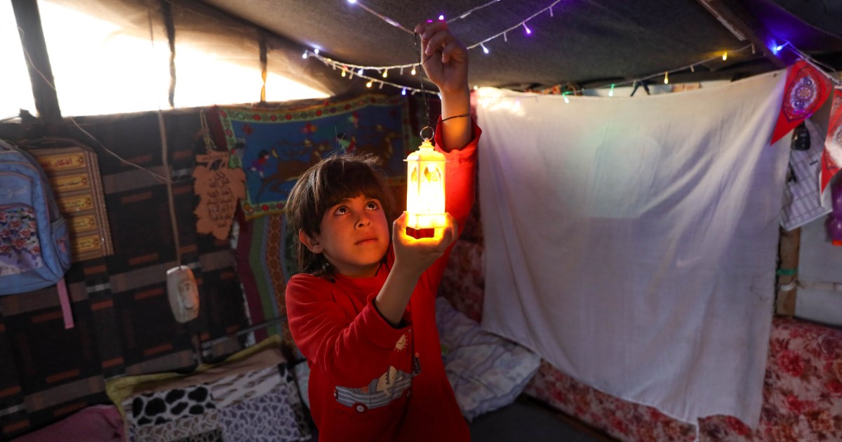 Despite displacement, Gaza families strive to create joy this Ramadan, navigating grief, scarcity, and fragile peace. Share Save Central Gaza Strip – At the Bureij refugee area in central Gaza, Maisoon al-Barbarawi welcomes the Islamic holy month of Ramadan in her tent. Simple decorations hang from its worn ceiling, alongside colourful drawings on the fabric walls, prepared by camp residents to mark the arrival of the blessed month. “We brought you decorations and a small lantern,” Maisoon tells her nine-year-old son, Hasan, smiling with an exhaustion tinged with joy at her ability to buy him a Ramadan lantern. “My means are limited, but what matters is that the children feel happy,” Maisoon tells Al Jazeera, expressing cautious optimism about the month’s arrival. “I wanted these decorations to be a way out of the atmosphere of grief and sadness that has accompanied us over the past two years during the war.” Maisoon, known to everyone as Umm Mohammed, is 52 years old and a mother of two children. “My older son is 15, and the younger is nine years. They are the most precious things I have.” “Every day they are safe is a day worth gratitude and joy,” she says with pride mixed with fear, referring to the terror that has accompanied her throughout the war at the thought of losing them. Like other Palestinians in Gaza, what distinguishes this Ramadan is the relative calm that has come with the current ceasefire, compared with the previous two years, when Israel’s genocidal war on Gaza, which has killed more than 70,000 Palestinians, was at its peak. “The situation is not completely calm,” Maisoon explains. Everyone knows the war hasn’t truly stopped; shelling still happens from time to time. But compared to the height of the war, things are less intense.” Maisoon participates in camp administration activities, helping prepare bread and arrange dates and water for distribution, minutes before the call to prayer on the first day of Ramadan. “This is the third Ramadan we’ve spent in displacement. We lost our homes, our families, and many loved ones.” “But here in the camp, we have neighbours and friends who share the same pain and suffering, and we all want to support one another socially.” Maisoon lost her home in southeastern Gaza at the beginning of the war and was forced to flee with her husband, Hassouna, and their children, moving between camps before eventually settling in Bureij under what she describes as “very bad conditions”. “We are trying to create life and joy out of nothing. Ramadan and Eid come and go, but our situation remains the same,” she says after a brief pause. Maisoon’s words fluctuate between optimism and fear, but she insists that Ramadan is “a blessing”, despite everything around her. On the first day of Ramadan, she had not yet decided what she would cook for her family, as her limited means would only allow for a modest meal. But she had already prepared her prayers and wishes before breaking her fast. “I will pray that the war never returns. That is my daily prayer: that things calm down completely and that the army withdraw from our land,” she says, pointing to bullet holes in her tent caused by gunfire from an Israeli quadcopter drone days earlier. Fear of the war’s return during Ramadan is not unique to Maisoon, but is shared by many across the Gaza Strip, who worry about a renewed escalation, similar to last year when fighting resumed on March 19, 2025, coinciding with the second week of Ramadan. That renewed war was accompanied by the closure of crossings and a ban on food aid entering the enclave, triggering a severe food crisis and humanitarian famine that lasted until last September. “People these days keep talking about stocking up. They tell us: store flour, store food… the war is coming back,” Maisoun says anxiously. “Last Ramadan was famine and war at the same time. I spent all my money during the previous famine.” “My little son used to pray for death because he craved food. Can you imagine?” Gaza enters this year’s Ramadan under a “ceasefire” that began on October 10, 2025. That truce remains fragile, but reports from the World Food Programme (WFP) and the UN Office for the Coordination of Humanitarian Affairs (OCHA) indicate a relative improvement in the availability of certain food items, compared with periods of severe escalation and closures. Commercial activity has partially resumed, and aid has entered at a steadier pace, though the flow remains inconsistent and subject to restrictions and logistical obstacles. Despite a broader range of goods appearing in markets, prices remain high, and purchasing power is severely weakened, with large segments of the population still reliant on humanitarian assistance to meet basic needs. Many Palestinians in Gaza continue to rely on aid organisations to eat. Hanan al-Attar is one of them. She received a food parcel from a relief organisation on the first day of Ramadan. Opening the package with a broad smile, she celebrates its contents while her grandchildren gather around her. “This is fava beans, halva, dates, tahini, oil, lentils, beans, spreadable cheese, mortadella, mashallah, an excellent parcel,” Hanan tells her daughter standing nearby. “This will be perfect for tomorrow’s suhoor,” she says, referring to the predawn meal before Muslims begin fasting for the day. Hanan, 55, is a mother of eight who fled to Deir el-Balah a year ago from Beit Lahiya in northern Gaza, one of the hardest-hit places by Israel during the war. She tells Al Jazeera that she will have to depend on whatever aid arrives to sustain her during Ramadan, due to her difficult economic situation. “Today, thank God, we received assistance. This will ease my worry about what we will break our fast with,” says Hanan, who shares a tent with 15 family members, including children and grandchildren. Smiling, she admits she secretly set aside a 