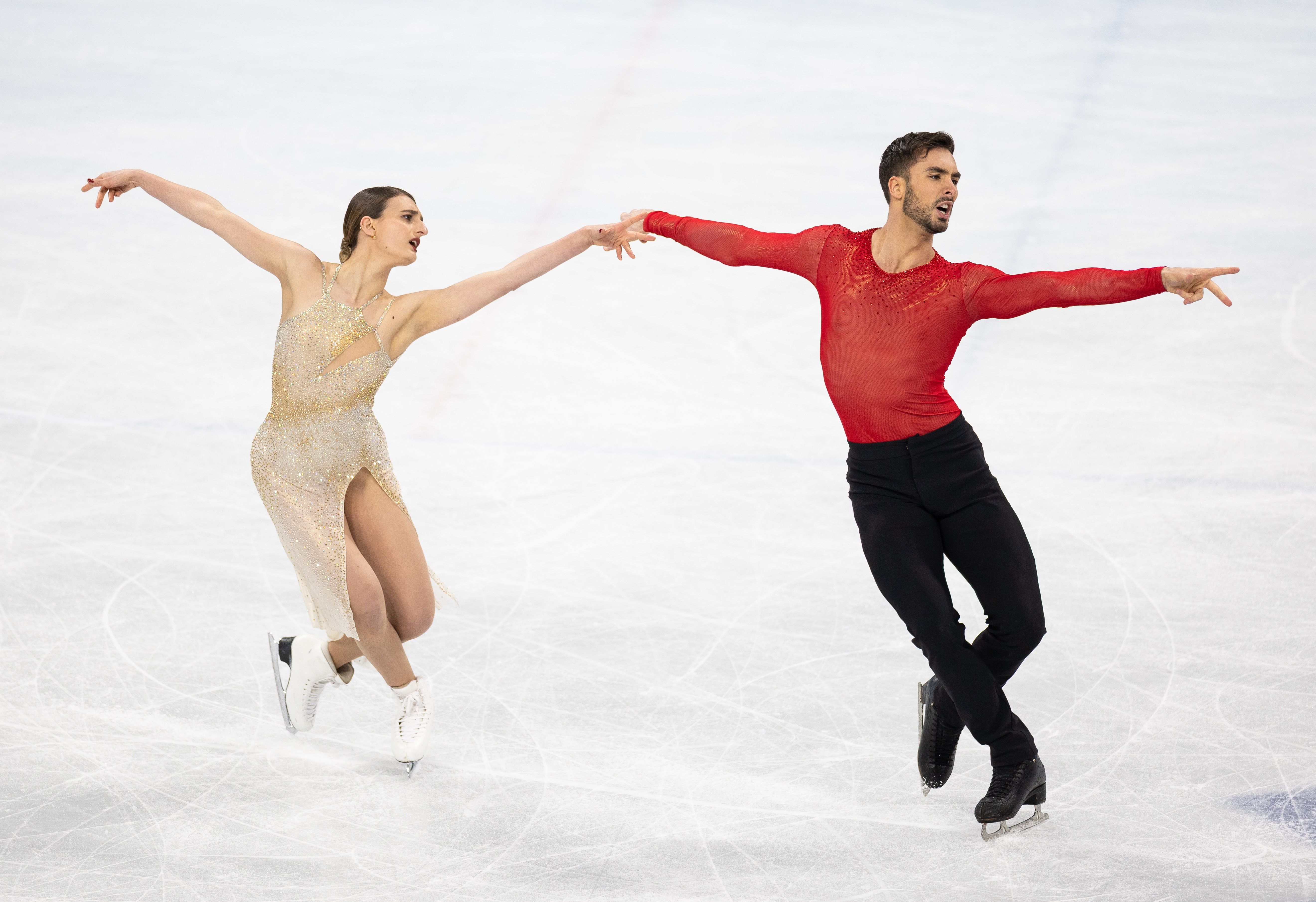 (Adam isn't the only talking head in the docuseries, but he definitely spills the most tea and gets in the best one-liners.) Although Glitter and Gold doesn't include Gabriella's perspective or delve into her claims, she has said she was "pushed out of my own career." In a memoir released in January, she alleges Guillaume was controlling, especially in the lead-up to the 2022 Olympics, and she even feared for her safety. For his part, in response to the claims, Cizeron stated, "In the face of this smear campaign, I want to express my incomprehension and disagreement with the labels attributed to me. ... The book contains false information, including statements I never made, which I consider serious."