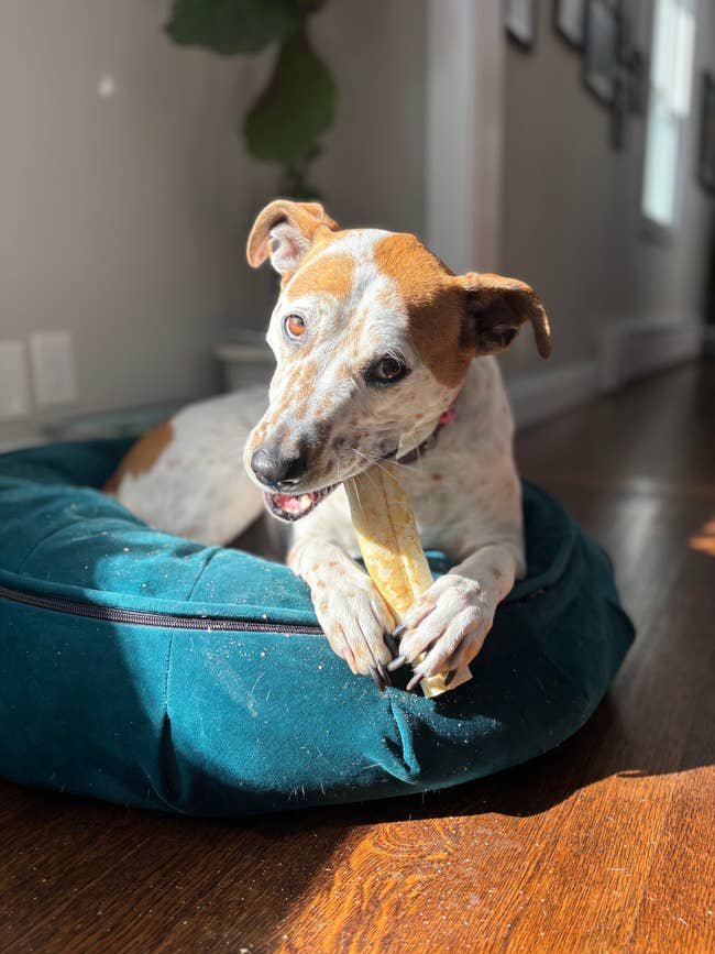 We hope you love our recommendations! While every product is independently chosen by our editors, BuzzFeed and our publishing partners may collect a share of sales or other compensation from the links on this page. You can read more about how our affiliate partnerships work in our Editorial Standards & Ethics Guide. There are dog owners, and then there are people who treat tail wags like performance reviews. Promising review: "These venison no-hide treats are my dogs' favorites. I had no idea anything like this was even available until someone gave me a package for Christmas. They kept my dogs busy for hours, and the best part is that there is no rawhide in them, just nutritious meat and vegetable ingredients, so you don't have to worry about all the nasty chemicals involved in making rawhide treats. I bought several packages in all the available flavors to have on hand for an occasional special treat. Your dog will love these." —Mary Price: $10.49+ (available in three pack sizes and six flavors) Promising review: "We have a few of these now. I have the original one put away for safekeeping. So far, even our destructive dog has been very gentle with both, and currently, our 5-year-old dog got his first little Lamb Chop as a tiny puppy, and he has never been destructive. We got our youngest Yorkie at about 4 months old instead of 8 weeks old, and he had some bad habits that he developed before he came to us. So far, this is the first toy he has not chewed on for weeks already, and he's sleeping with it daily." —Kimberly Price: $3.99+ (originally $6.30+; available in three sizes) Promising review: "Our Lab mix has always suffered from anxiety, fear, aggression with strangers, and breaks in routine. We ordered this product after seeing several ads on our social media. He LOVES it, and so do we! Super easy to clean and refill, long-lasting, and the treat refills don't smell bad like other dog treats! Our sweet boy recently began to lose mobility in his rear end and gets super upset when he is unable to get around independently; this gives him the comfort he needs to just relax and lie down while enjoying a treat!" —Elizabeth Price: $19.85+ (available in three sizes and three colors) Promising review: "We have a dog who gets stressed with fireworks, so every holiday that involves fireworks, we fill this up, freeze it, and she's happy. Be careful leaving them alone with it because my other dog tore it up once the treat was gone." —Aly Promising review: "My new German short-haired pointer puppy, 'The Destroyer,' is a chewer when she is bored. Being no strangers to GSPs, it has always been hard to find a ball that will last. The last tennis ball, I think she made about 1,000 tiny pieces out of it! These balls seem to be indestructible, have some weight to them, and are good for throwing. The dogs love them!!" —M Price: $5.50+ for a two-pack (originally $12.99+; available in three sizes) Promising review: "At first, Willow wasn't quite sure about these freeze-dried beef liver treats. The texture gave her a moment of 'paws' (pun intended). But once she took that first crunchy bite, it was game over — she's absolutely hooked! Now, these treats are her go-to favorite. She'll sit, stay, and maybe even do a backflip if it means getting one. The 14-ounce tub is the perfect size to keep her tail wagging without running out too soon. If your pup needs a high-value treat to bring out their inner superstar, these are a must-try! Willow gives them two paws up!" —Kathy Price: $4.99+ (originally $5.99+; available in six sizes) Promising review: "My dogs are chewers, and one is a HEAVY chewer. These are strong enough for her to chew on for a few weeks and not a few hours or days. All three of the dogs love them, and they all smell like a different flavor. I will be buying more." —Cindy Price: $23.70+ (originally $29.95+; available in four sizes) Promising review: "I love, love, love this Snuggle Puppy! It is so cute, but the beating 'heart' and heat packs work great. While not a complete cure for my dog's newly found anxiety, he helped drastically! It has definitely helped keep him calm the majority of our time away from him. I consider this a win! I highly recommend it for a pup with anxiety." —Justine Price: $39.95+ (originally $49.99+; available in four colors) Promising review: "My dog (and kids, haha) love this thing. Great interactive toy. Very different than most dog toys. Makes a fun squeaking sound. A great way to keep the dog moving and active while I can stay seated. Love it." —Christie Price: $27.99+ (available in two sizes and two colors) Promising review: "I've bought these beds for several years, and my crew loves them! I have a large size so they can double up and nap together, and two smaller beds so they have their own space. The beds are great for summer as the material is breathable (like a tight mesh) and doesn't hold heat like a plush bed. In cold weather, I put a blanket on top, and it keeps them toasty warm. I especially like that the design is similar to a cot and keeps them off the ground. Easy to assemble, great concept, lasts for years, and can be used indoors and outdoors." —Cheryl Price: $19.29+ (available in three sizes and four colors) Promising review: "My dog is obsessed with this toy! Whether there are treats in it or not, he has so much fun sniffing around and pulling the dinosaurs out. He self-entertains with it, and we play with it together. His favorite game is getting all the dinosaurs out, bringing me the volcano, and retrieving them for me to put back. I wish the fabric were a little stronger (1.5-year-old retriever and soft fabric do not mix well). But somehow, he has managed not to completely tear it apart! Either way, we will be getting more of this style of toy!" —Sarah Promising review: "I have one dog (Lab mix, 9 years old, 85 pounds) who is generally pretty chill except he is TERRIFIED of thunderstorms and fireworks. Another of my dogs (L
