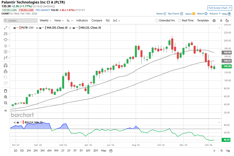 Palantir (PLTR) stock, which was once viewed as one of the market’s most unstoppable AI plays, has pulled back sharply. Shares are down about 25% year-to-date (YTD) and now trade about 35% below their 52-week high despite the company’s solid performance. The recent weakness in PLTR stock is due to two primary concerns. First, valuation. For much of the past two years, Palantir commanded a premium valuation. Its extremely high valuation compared to peers weighed on investors’ sentiment. QQQ Just Sent a Chilling Signal — Right Before Nvidia Earnings Has Palantir Bottomed? Probably, Based on Huge, Unusual Put Options Activity in PLTR SoftBank Just Sold $3.6 Billion Worth of Nvidia Stock. Should You Ditch NVDA Too? Tired of missing midday reversals? The FREE Barchart Brief newsletter keeps you in the know. Sign up now! At the same time, a new concern emerged from the rapid rise of AI agents for the broader software ecosystem. Investors fear that powerful AI agents could hurt the prospects of software vendors like Palantir. So far, however, the company’s business momentum and solid outlook tell a different story. Palantir continues to post accelerating revenue growth, supported by strong demand for its AI Platform (AIP) across both government and commercial customers. Rather than being displaced by AI agents, Palantir appears to be positioning itself as an enabler, helping organizations deploy and operationalize AI at scale within complex, regulated environments. Further, Palantir's stock has gotten cheaper due to the recent selloff, easing some valuation concerns and improving the risk-reward profile. Also, analysts’ sentiment toward PLTR stock improved, supporting its investment case. Palantir entered 2026 with strong operating momentum, reflecting accelerating revenue growth, expanding margins, and significant demand for its AIP. After delivering 56% year-over-year (YoY) revenue growth in 2025, the company has guided 2026 revenue between $7.182 billion and $7.198 billion. At the midpoint, the guidance implies 61% YoY growth, indicating further acceleration. The key growth driver for Palantir will once again be its U.S. segment. The company’s U.S. commercial revenue surged 137% YoY in the fourth quarter, while U.S. government revenue expanded 66%. The commercial segment reflects increasing enterprise adoption of AIP for production-grade AI deployments. Palantir is likely to benefit from the expanding wallet share among existing clients and strong new customer acquisition. During 2025, Palantir closed $4.3 billion in U.S. commercial total contract value bookings, a 161% increase from the prior year. Remaining deal value in the U.S. commercial business climbed 145%, indicating significant growth ahead. Customer count in the U.S. commercial reached 571, up 49% YoY. Looking ahead, U.S. commercial revenue is projected to exceed $3.144 billion in 2026, implying growth of at least 115%. Meanwhile, the U.S. government segment is expected to benefit from continued execution on existing programs and incremental contract awards. Importantly, Palantir’s strong revenue growth is translating into solid margins. In the fourth quarter, the company generated $798 million in adjusted operating income, representing a 57% margin. For 2025, adjusted operating income reached $2.3 billion, with a 50% margin, an expansion of 1,100 basis points from 2024. Adjusted free cash flow also totaled $2.3 billion, translating to a 51% margin and 82% YoY growth. The strong demand and solid margins indicate that Palantir is still in a high-growth phase and is likely to expand margins and generate strong cash flow. Palantir continues to deliver strong growth supported by expanding commercial adoption and sustained government demand. While the stock’s valuation remains elevated, the recent decline has meaningfully eased some concerns. PLTR stock trades at a price-to-sales ratio of 70.84, which is significantly below its prior peak levels. Wall Street sentiment has also turned more constructive. Just one month ago, seven analysts rated the stock a “Strong Buy.” That number has now increased to 13, reflecting growing confidence in the company’s execution and long-term positioning in the AI space. The average analyst price target is $200.43, implying roughly 48% upside from current levels. Overall, Palantir’s strong growth trajectory, easing valuation concerns, improving analysts’ sentiment, and notable upside potential indicate that buying the dip could pay off. On the date of publication, Amit Singh did not have (either directly or indirectly) positions in any of the securities mentioned in this article. All information and data in this article is solely for informational purposes. This article was originally published on Barchart.com