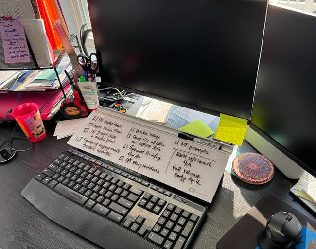 We hope you love our recommendations! While every product is independently chosen by our editors, BuzzFeed and our publishing partners may collect a share of sales or other compensation from the links on this page. You can read more about how our affiliate partnerships work in our Editorial Standards & Ethics Guide. But the past is the past. Get these for your future! Promising review: "Easy install and a much cleaner look than a power strip or extension cord. The added USB plugs and the light are functional extra bonuses! I will be buying more of these for every room in the house!" —DAN Get it from Amazon for $12.99+ (available in three colors and in two other sizes). Read more about how chair cushions can help at Cleveland Clinic. Promising review: "I don't normally write reviews, but on this occasion, I'm willing to make an exception. I sit behind a computer almost all day long. I make an effort to get up and walk around at least once per hour. Despite that effort, I was suffering from tailbone pain for over a month. It was progressively getting worse. This cushion brought relief literally on the very first day. My pain has subsided almost entirely. I've been thoroughly impressed with my purchase." —Pdrmoon Get it from Amazon for $47.99+ (available in two sizes and four colors). Promising review: "Freaking love this thing! I have to sit for like 8–10 hours a day right now in the early years of med school, and it’s been a game changer for my back! I mostly use it upside down so I can rock my feet back and forth, but I like the soft side, too, when I’m trying to sit still. Highly recommend if you have a sore tailbone at the end of a long work/study day." —Bails Get it from Amazon for $41.95+ (available in velvet or mesh and three colors). Head over to our list of the best under-desk footrests to see some other styles! Promising review: "This is one of the best footrest products that I have seen. It keeps me relaxed and comfortable in a sitting position, especially if I've been sitting for too long in cars, planes, or on my couch." —YangTingting Get it from Amazon for $16.99+ (available in three colors). Read more about migraine treatments at Mayo Clinic. And read more about aromatherapy and stress and tension at Johns Hopkins. Promising review: "After reading an article on BuzzFeed that touted this product, I bought one for my boyfriend, who suffers from awful, frequent headaches. It WORKS. Not only does he swear by them, but he has also purchased them for his mom and several friends. FANTASTIC." —Your friend Sarah Read my coworker's Migrastil Migraine Stick review for more deets! Promising review: "Never thought something analog would be SO useful in my daily routine. I work from home and am constantly project managing multiple complex strategic projects. Having pertinent information directly in front of me and top of mind has done incredible things for my productivity. Never would have imagined it would make such a difference. For a nominal investment, I highly recommend it if you have trouble keeping up with things." —Captainflapjax Get it from Amazon for $27.99+ (available in five designs). Promising review: "I have had this ball chair for a few years. I purchased it after I was experiencing pain in my lower back, tailbone, and butt from sitting too long at my desk. The ball chair fixed these issues for me. I purchased one for my office, my home office, and any employee of mine who wanted one. It is super easy to roll around (much easier to navigate than just sitting on a balance ball, which is where I started). It’s worth the price, and I have had no issues. Some people think the chair is funky, but I have no regrets!" —Timothy Brown Get it from Amazon for $67.73+ (available in seven colors). Promising review: "I am obsessed. I paired this with a treadmill platform so I can work, do school, and exercise! Such a good product." —Felicity Get it from Amazon for $104.48+ (available in 5 sizes and 10 colors). ErgoDriven is a small biz making products to help make getting through the work day a little less painful. Promising review: "I recently invested in a standing desk to help reduce my sedentary habits, shed some extra weight, and get back into shape. I experience foot pain quite often, including plantar fasciitis, so I decided to try this mat, hoping it would help me stretch and exercise my feet. This mat has far exceeded my expectations. "Standing barefoot on this mat has been a revelation. The various surfaces allow me to massage my feet all day long. The textured areas and different angles are perfect for stretching my toes forward and backward, giving me a great range of motion that I didn’t have before. My feet, which usually ache after long days, actually feel less pain now, despite standing all day. "Since I started using this, my productivity has skyrocketed. Standing helps me stay far more awake and engaged, and this mat allows me to stand much longer without discomfort. It’s been a game-changer for maintaining focus and energy during my long 12-hour shifts." —WHy gEoff Get it from Amazon for $109+ (available in three colors). You can set the timer for 5-, 10-, 15-, 20-, and 30-minute blocks by rotating it to the time you want. Then it will start the countdown. There are also four volume options in case you don't want to disrupt any other people in your home. Promising review: "I love this timer to keep me on task while working from home! For the price, I was honestly impressed with the quality. My only suggestion would be an option for the display to stay backlit. You can press the snooze button on top to light the display for about five seconds, but that’s not super convenient if you have it rotated in timer mode, plus you have to actively press the button rather than just glancing at how much time is left. Honestly, this is a very small quibble that I could fix simply by not working in a dimly lit room, but it’s really the only critique 