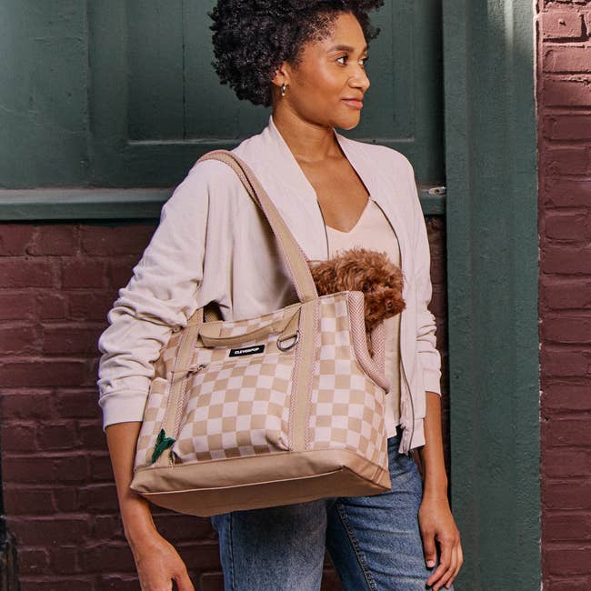 Promising review: "My pom is a petite little dog with a big personality. She thrives on adventures, but we’ve found that she tires out quickly when on a leash. That’s why her carrier is perfect. It gives her a cozy spot to retreat from the extra attention she often attracts while out and about. Yet, she can still pop her head out to say hi whenever she feels comfortable!" —Happy Mom