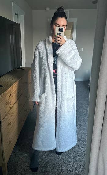 We hope you love our recommendations! While every product is independently chosen by our editors, BuzzFeed and our publishing partners may collect a share of sales or other compensation from the links on this page. You can read more about how our affiliate partnerships work in our Editorial Standards & Ethics Guide. Why, yes, fleece-lined Crocs are in this list. Depending on where you live, you might still have quite a few chilly days ahead of you (excuse me while I take a quick pause to shake my fist angrily at the damn groundhog and his prediction of more winter). ANYWAYS, you might want to check out these comfy-cozy, snuggly-buggly products that'll make you want to happily curl up like a cat in front of a fire. I'm talking "Cloud Socks," coordinated sweatsuits, faux fur slippers, Dreamlux leggings, and so much more. Promising review: "If you want the softest, yummiest robe ever, this is for you! It engulfs you in softness, it breathes so you don’t *glisten* while wearing it. Mine is floor length, so I can pull my legs up on the couch or chair, and relax! I wish you could slip it on right now and feel its softness! It washes up beautifully, too!" —Luvstawkin Get it from Amazon for $112.99+ (available in four colors and three sizes — size 1 is recommended for people 5'6" and under, size 2 for 5'6" to 6', and size 3 for people over 6'). Promising review: "These soft socks are like walking on clouds! I put them on and instantly felt the warm, cuddly comfort — they’re so soft, I never want to take them off. Perfect for chilly mornings or lounging around the house, they make me feel like I’m wrapped in a hug. The best part? They’re super cute and come in fun colors and patterns that add a little extra personality to my outfit. Whether I’m relaxing with a book, watching my favorite show, or just need some serious comfort, these socks are my new go-to. If you love feeling cozy and want to add a splash of fun to your sock drawer, these are a total must-have. Soft, stylish, and oh-so-snuggly!" —Shannon Get it from Amazon for $9.05+ (available in six styles and multipacks). Promising review: "Super soft and cute! I love the style of these cardigans, but you definitely need to be careful with washing/cleaning them since they pill easily. They also run small — I ordered a large for a regular fit, but if you want it to fit looser, you might want to size up two sizes." —remotemaya Get it from Urban Outfitters for $39 (available in women's sizes 2XS–XL and five colors). Promising review: "Much more than expected. Great fabric. Looks very expensive. Many compliments. Can dress up or down. Very comfortable. The top was a bit big on me. I washed the set on a gentle cold cycle, hung it to dry, and when it was almost dry, I threw the top in the hot dryer for a bit to bring down the size, and now it fits perfectly. To remove wrinkles, just pop them in the dryer with a damp cloth for a bit. Very stunning set. LOVE IT!" —KT Get it from Amazon for $48.99 (available in women's sizes S–XL and in 18 colors). Promising reviews: "This hat makes my outfit look 10 times better. I look so expensive and put together when I wear it. I feel like I should be walking around Europe!!! It is so soft, and I get so many compliments. Definitely order!!" —Meg Smith "I wore it for my cousin’s 30th birthday costume party! It kept me warm in Detroit and looked good with my Bratz doll costume." —Amazon Customer Get it from Amazon for $16.99 (available in 11 colors). Promising review: "Bought this set for my teen daughter and she loves it. Super soft. Not much compression and support, but that only makes it comfier. Great for yoga, walks, or running errands." —anonymous Get it from Old Navy for $11 (available in sizes XS–4X and nine colors) and snag the coordinating High-Waisted PowerChill Side-Stripe Biker Shorts for $12! I got these for my kids over the holiday season! They've been great for running quick errands and have kept their little tootsies nice 'n' warm (and spared me from running up and down our home's stairs to grab socks). Promising reviews: "I love my lined Crocs. I hate having cold feet so these come in handy" —Maria Moya "My only regret is that I waited so long to buy these. Easy to slip on and off. Keeps my feet warm and dry. I walked through a muddy, soaked field and my feet were totally snug. I’ve worn these when it’s raining too. Water might get in through the holes but with the fleece lining I don’t even feel it. 10/10 would purchase again." —Linnaly Get them from Amazon for $35+ (available in women's sizes 4–17/men's sizes 2–15 and 17 colors). And if you're more into fur than fleece, Crocs makes faux fur–lined platform Crocs too! Promising review: "This sweater is a winter staple! Super comfortable, cozy, soft, and well-made. Material feels like high quality, and it holds its shape after washing. I bought two in different colors!" —Vita T. Get it from Amazon for $42.99+ (available in women's sizes 1X–5X and 16 colors). Promising review: "Perfect for spring and thicker than expected! I was worried it'd be see-through, but it's not. I got a large and it's the perfect amount of oversize." —ashley Get it from Aerie: It's Casual Knit Slub T-Shirt for $39.95 (available in women's sizes 2XS–2XL and six colors), It's Casual Knit Slub Short for $26.21 (available in women's sizes 2XS–2XL and four colors). Psst — Some reviewers also say it's similar to pricier brands like Comfrt and Aritzia. Promising reviews: "So nice, I bought it twice.. and forwarded the link to a friend because she wanted a set too. I bought the Comfrt anxiety sweatshirt and spent significantly more for just a sweatshirt than I did on this whole set. This set is comfortable, soft, and heavy...the whole snuggly package! Almost don't want to leave a review because the price is so good, and I don't want it to sell out. I will be back for more!" —Alicia Glenn "This is the ultimate Aritzi