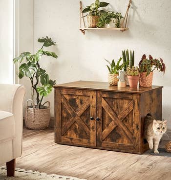 We hope you love our recommendations! While every product is independently chosen by our editors, BuzzFeed and our publishing partners may collect a share of sales or other compensation from the links on this page. You can read more about how our affiliate partnerships work in our Editorial Standards & Ethics Guide. You'll be shocked by how easy it is to disguise such monstrosities. Reviewers also use this as a media console to store games and electronics, too. Like I said...genius! Promising reviews: "I love this piece. Before, everyone in the family would come in and throw their shoes off and the area was a mess. Now everyone takes time to put their shoes in this and the area looks so nice. I’ve had many compliments on it." —Vicki Davis "I’ve had open shoe racks and the shoes were always falling out. Now all my shoes are contained and organized and hidden in a nice cabinet that’s low profile." —Kirsten Soquel Covogoods is a Utah-based, woman-founded small business that specializes in storage solutions crafted from up-cycled books. Promising review: "We absolutely love our CovoBox. It fits perfectly into our cabinet, and the cable modem/router, AppleTV, and external hard drive, and their various cables are now cleverly disguised as Harry Potter books 1–7. Great customer service, quick delivery, and a fabulous product. Two thumbs way, way up!" —John Grace Get it from Covogoods on Etsy for $29.40+ (originally $42; available in various customizations and sizes) OR from Amazon Handmade for $39+ (you'll choose customizations before adding to your cart). Promising review: "This is a very handy item. It fits perfectly in my laundry area. Easy to assemble and to use. A must if you like to be organized and you don't have a lot of cabinets to do so. I am very happy with this purchase!" —Amazon Customer Get it from Amazon for $22.99+ (available in five colors). Promising reviews: "This is the laundry basket we have on top of our dryer for whites. It is attractive, holds up nicely and if we have people over, they do not need to see our laundry displayed. Love it!" —Karen R. "Wow very thick and sturdy! I’m quite surprised. Love it for my nursery laundry basket for all the toys. The color is just as photo shows, complementary for all decor types. Good value for the money!" —Ichi Ban Get it from Amazon for $22.99+ (available in four sizes and five colors). It comes with a removable liner for the hamper that can be easily lifted out and wiped clean with a damp cloth. Promising review: "Straightforward assembly and a beautiful product, I was really happy. This looks perfect in a small bathroom and hides the unsightly laundry pile nicely. I keep makeup on top and extra toilet paper in middle, with plenty of space. The bamboo is nice and water resistant too, so deals well with humidity." —AJohns Get it from Amazon for $69.99 (available in two sizes/styles). One pint covers 100 square feet of brick surface. Note: The paint must be diluted at at least a 1:2 ratio with water to achieve full coverage! Promising review: "This is amazing!!!!! It looks like a different fireplace. I have been looking at a horrible grout repair that the previous owners did for 20 years. I did this in about two hours!!!!!! This product is fast, it's easy to use, easy to clean up, and inexpensive." —Denise Get a pint from Amazon for $21.37 (available in larger sizes). And grab a sleek cable sleeve (aka a wire cover) while you're at it! Promising review: "My cords look so much neater now. I also used a cord protector to bind up my cords. My surge protector fit nicely in the box. Very happy with my purchase." —Amazon Customer Get a two-pack from Amazon for $29.99 (available in four colors). No tools required! It comes with a two-way clamping design that works on both horizontal and vertical surfaces. It's compatible with desks that are up to 3.1 inches thick. BedShelfie is a POC-owned small business that focuses on space-saving solutions for the home. Promising review: "First impression of the CarryUp, the build of it is solid and felt heavy. The weight of it made me confident it will hold up well and last me a long time. Overall setup was a breeze. No tools needed at all. One sentence that sums up this product for me ... Simple and effective!!!!! If you have messy cords underneath your desk then don't think, just buy this product." —Eddie Sadiwa Get it from Amazon for $24.99 (available in dark grey or cream). OK, so painting your concrete patio may not sound like the easiest upgrade but if you're no stranger to painting and want a big impact, give it a try! Promising review: "Works great. Used it in the basement for a quick, simple, inexpensive upgrade to brighten up the floor a bit and give the cement a clean look. Did a fairly good job filling in some of the hairline cracks as well." —T Get a gallon from Amazon for $35 (available in silver gray or slate gray). There's a removable divider inside depending on how large your litter box is. You could keep the divider in and use the other side to store bags of cat litter, the scooper, etc.! Promising reviews: "I absolutely, LOVE this litter box cabinet. I used to keep it in my closet until noticing my clothes would have a chalky film on them. This is perfect!! Not only does it hide the box itself, but it helps contain any smells that are beginning to emanate from the box. I clean it out every other day and have never noticed any odors. I also took out the divider, because my box was a few inches too long. All changing supplies are kept inside, so it works out great! I HIGHLY recommend, this litter box cabinet!!" —Angie "This is the perfect way to conceal a litter box as well as the odors and dust that come with them. I have noticed a significant difference in the air quality in my home, it is as if I don't even have a litter box." —Annie Get it from Wayfair for $69.99+ (originally $82.99+; available in five colors). While restoring a finish isn't quit