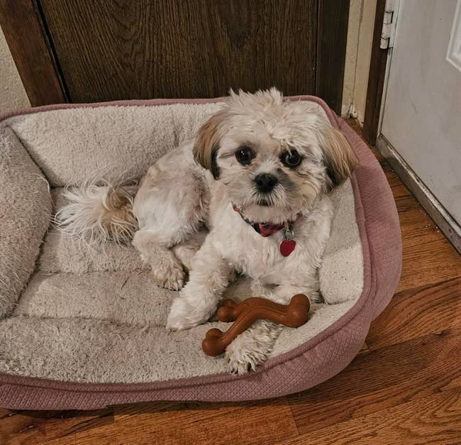 We hope you love our recommendations! While every product is independently chosen by our editors, BuzzFeed and our publishing partners may collect a share of sales or other compensation from the links on this page. You can read more about how our affiliate partnerships work in our Editorial Standards & Ethics Guide. I spend more on gifts for my dogs than I do for my (human) loved ones. Promising review: "Our kitten really loves this. I wasn’t sure if he’d take to it, but he loves the little ball that dangles from the top. Now he has been climbing up and draping himself over the top of it. It was easy to assemble and seems to be of good quality. It also looks really cute in our home versus a typical scratching post." —Casey Roberts Get it from Amazon for $19.99+ (available in three sizes). Promising review: "My puppy is absolutely obsessed with these! The balls are easily two of his favorite toys; he’s constantly bringing them to us to play. They have the perfect bounce, which keeps him entertained for hours. Even during the toughest part of his teething phase, they’ve held up incredibly well. I also really appreciate that they aren’t too loud but are still super durable and well-made. I highly recommend these for anyone looking for a fun, sturdy toy!" —Linda Lee Get a two-pack from Amazon for $9.94 (also available in larger quantities and other styles). Promising review: "Purchased this for my mini dachshund puppy and she loves it. The quality is great and is holding up, though my puppy is biting and scratching. The sides of the bed are plush, and the bed itself is soft yet firm enough to be comfortable." —Amazon Customer Get it from Amazon for $39.99+ (available in eight sizes and 18 colors). It can also help calm your pup during fireworks, separation, travel, vet visits, grooming, and more. Promising review: "This is a game changer for our anxious dog. He loves having this on and so far hasn’t tried to take it off." —Megan Anwar Get it from Amazon for $39.99+ (available in sizes XXS–XXL). Promising review: "I have a Catahoula/ridgeback, and she is a big power chewer. She played with this for hours, and it still looks brand new. The squirrels were not ripped up, nor was there a cubby. I was very surprised because she tears everything up. It's hard to find toys that will last more than 5 minutes. Thank you, Outward Hound, I'll definitely be looking into more of your products." —Crymson66 Get it from Amazon for $11.87+ (available in four sizes). Promising review: "My orange kitty loves to find treats! I have to encourage a bit, but I bet after another month she'll have it mastered!" —S D Promising review: "This bone will last your dog forever! Mine has had his for 6 months and works on it for 20 minutes or so a day, and has barely made any progress. It keeps him coming back, so it must have a good flavor. Bone is not very smelly, which I love as a good chewing alternative to bully sticks, which I can't stand. These are excellent value, as mine has kept my chewy dog busy for so long and is much cheaper than a $5 bone he would eat in 10 minutes. Enjoy a picture of my baby taking a snooze after a good chew session!" —N. Rizzo Get it from Amazon for $9.14+ (available in two sizes, another shape, and in a set). Get it from Smalls for $52 (available in two colors). Promising review: "Fantastic! My older 4-year-old cat chews on plastic all the time, and it drives me nuts; I also have two young kittens. All three of the cats went wild for these toys and have been playing and having a blast. Hoping it stops the plastic chewing habit, but even if it doesn’t, this is an awesome toy. Small, no noise, maximum fun." —Kauffmanet My Boston Terrier, Ethel, got a similar bone (same brand, different dino) when she was just a puppy, and she's now 11 years old. She still carries it around, sleeps with it, and chews it. She loves it so much that I even bought it in other colors, too. Promising reviews: "We have FIVE of these because the dogs love them so much and cannot destroy them." —Aubrey M. Garcia "This high-quality toy has been thoroughly enjoyed by my dogs. Its appropriate size and durability ensure its safety, even for my largest chewers. The toy’s design facilitates easy chewing, making it an excellent value for money. Notably, it surpasses the quality of other brands in my experience. Furthermore, the toy contributes to maintaining clean teeth, resulting in improved breath. I have been using this brand for over 25 years and have never had any issues. I appreciate that the product is odorless." —Mtmtgf Promising review: "Oh my fun! My pup loves her yellow ball. It keeps her busy, and she has so much fun. It is safe for her to chase around, and a good size for a small dog. It stays charged for just the right amount of time to give your pup a workout." —Victoria F Berman Get it from Amazon for $15.91 (available in two colors). Promising review: "This has been one of the best toys I've ever bought for my young beagle. Keeps him busy in the evening before bedtime, and it doesn't overstimulate him while he works on it. I do not have to worry about him choking on this like with bully sticks. I bought another one for my senior dog; she was jealous that he had something so interesting. 😁 She enjoys hers also. I looked up all the things you can use in it. So many." —Lolee Gon Get it from Amazon for $19.85+ (available in three sizes and colors). Promising review: "My puppy loves this! Great interactive way to feed her. She has a lot of energy, and this is a way to tire her out and keep her busy." —Christine Get it from Amazon for $11.98+ (available in four colors and two other styles). Promising review: "My pup and I are loving this carrier! I bought this carrier initially because, from the visuals, it seemed that the design was very clever and the materials were durable compared to lots of overpriced competitors. And it did not disappoint! That's exactly what we g