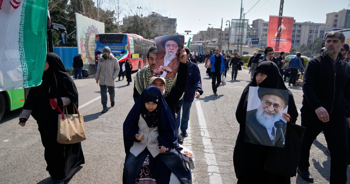 Worshippers wave Iranian flags and chant slogans against the US and Israel, as they gather to pray amid attacks. Share Save Iranian worshippers, many holding portraits of the assassinated Supreme Leader Ayatollah Ali Khamenei, have gathered in Tehran and other cities for the first Friday prayers since the United States-Israeli war on the country began seven days ago. People chanted anti-US and anti-Israeli slogans as they gathered for midday prayers on Friday during the Muslim holy month of Ramadan, undeterred by a ferocious bombardment on the capital, an Al Jazeera team on the ground reported. Iranian flags were also waved as people prepared to pray, in a sign of support for the Iranian government amid the ongoing strikes, including an attack in the early hours of the conflict that killed the supreme leader. Footage shared by Iranian media showed crowds of men and women dressed in black streaming to an open space outside the Grand Mosque of Imam Khomeini in the capital. In the background of one video, a man speaking through a loudspeaker mourned Khamenei, describing him as “the embodiment of piety and guardianship in our time,” while others, seated on prayer rugs, openly wept. Photographs showed worshippers marching in a demonstration against the US-Israeli war following prayers. Similar scenes were observed in footage from other cities across Iran, including Ilam and Borujerd in the west and Zahedan in the southeast, the AFP news agency reported. The prayers were held as the US and Israeli waves of strikes on Tehran and other Iranian cities, following threats from United States Defense Secretary Pete Hegseth that the bombardment was “about to surge dramatically”. The latest strikes on the capital hit a military academy and sites near a street housing key political offices, where Khamenei was killed on Saturday, as well as residential buildings, carparks and petrol stations, according to reports. Worshippers in many countries across the Middle East observed the third Friday prayers of Ramadan amid unprecedented threats and disruption amid the ongoing war. While US and Israeli strikes hit Iran, the Israeli military also continued its attacks in southern Lebanon and the southern suburbs of the capital, Beirut. Huge numbers of Lebanese have been displaced by the Israeli attacks, amid Israeli orders to issue threats of forced displacement in targeted areas. Meanwhile, countries across the Gulf, including Saudi Arabia, Qatar, Bahrain, Kuwait and the United Arab Emirates, have been targeted by Iranian drones or missiles in retaliatory strikes, mainly because of a US or Israeli presence. And in occupied East Jerusalem, Israel’s Civil Administration said it had cancelled Friday prayers at the Al-Aqsa Mosque, Islam’s third-holiest site, in the latest restrictions on activity at the complex. Civil Administration Chief Brigadier General Hisham Ibrahim said on Thursday via the Israeli army’s Al Munasiq platform that the decision was taken in light of Iran launching retaliatory strikes at “Israel and the entire region”. However, Israel regularly restricts access by Palestinians to Islam’s third-holiest site, including during Friday prayers in the current holy month of Ramadan. “The occupation authorities are exploiting any occasion to close Al-Aqsa, and this is completely unjustified,” Sheikh Ikrima Sabri, a senior imam at Al-Aqsa, told Al Jazeera earlier this week.