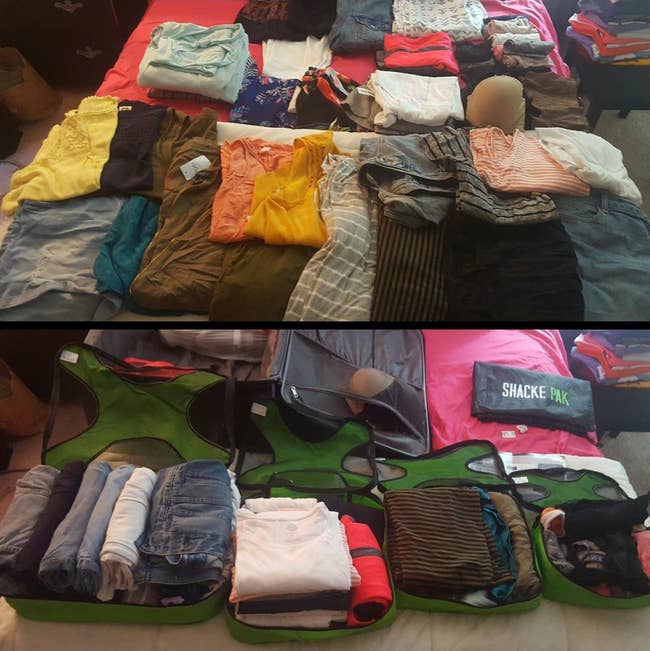 We hope you love our recommendations! While every product is independently chosen by our editors, BuzzFeed and our publishing partners may collect a share of sales or other compensation from the links on this page. You can read more about how our affiliate partnerships work in our Editorial Standards & Ethics Guide. These products might not cost a whole lot, but trust me, they'll make a big difference on travel days. Promising review: "Lots of space. I bought this for a business trip so I could carry my laptop and clothes for two nights and not check a bag at the airport. This worked perfectly and looks nice." —Angie J Get it from Amazon for $26.99+ (available in four sizes and 28 styles). Now you won't even have to pull your suitcase outta the overhead! Promising review: "I purchased this primarily for a better personal item carrier for flying. I was using a small gym bag but it didn’t keep anything organized. This is perfect with it’s many outside and inside compartments which allows me to get easy access to things I need to access during my flight and separate important items like phone chargers, medication, chewing gum, etc. As you can see, it fit under the seat perfectly with plenty of room for my feet on both Jet Blue and Southwest flights. Flight crew didn’t hassle me about its use as a personal item (although now Southwest won’t let my bring my pillow as an “assistive device” along with my purple bag and a carryon, but that’s a different story). I’m planning on using this in the Fall for a high school reunion where I may want to put some dress clothes for the event in a separate bag for transport. I plan to get a lot of use out of this bag and you will, also. I love the purple color as well." —Laura D Get it from Amazon for $54.05+ (available in four colors). All it is is a hood attached to a vest you can wear under *any* jacket to protect yourself (and your hair) from whatever the weather has planned. Promising review: "I love this! The quality is very nice and it fits great. Wore it last week in the rain with a coat I love that doesn't have a hood and it was perfect. It slips right under your jacket so all you see is the hood, so it pretty much blends in with your jacket. Such a great idea! Wish there were more colors and patterns, I'd order more." —Jill Hammel Check out a TikTok showing how someone used a similar neck pillow to just take that and a personal item onto a RyanAir flight that was charging for hand luggage. Promising review: "The Tube Pillow was a savior on my last trip. It held a surprising amount of clothes and doubled as a dirty laundry bag. I used it as an on-the-lap pillow, but it was a tad awkward to maneuver. For extra storage without extra fees, it's worth it!" —Sharon Here's what BuzzFeed Shopping editor Elizabeth Lilly has to say about it: "I first bought this for a weeklong Croatian vacation last year when I did carry-on, and as long as you are *thoroughly* reapplying, this stuff stays on pretty well. On a beach club afternoon, I did haphazardly reapply and missed a strip on one arm, but I tend to do that with spray-on or lotion sunscreen, too. Since then, I've packed this for any trip I've been on, including a two-day Disneyland trip where I toted this around in my bag and shared it with friends. I sometimes carry it with me in my purse on my everyday adventures because I know it's so easy to apply. Also worth mentioning...I am about the palest lady you've ever seen and swear by daily application of sunscreen. But when on a beach trip, I'm constantly swimming in the water and sweating. So yeah, this stuff works. And if you're a bit hesitant about jumping on the solid sunscreen bandwagon, you can pack a stick of this, knowing you have enough sun protection to get you through to finding some spray-on or lotion SPF at your destination." Promising review: "I travel frequently and travel light. My luggage is usually limited to a backpack that slides under the airline seat. For a two-week European cruise, I added a carry-on rolling suitcase. I've used these packing cubes twice so far, and I am hooked. One cube holds everything (including clothing) I take on a three-night trip. The cube slides into my pack, saving massive amounts of room, and everything is easy to find during travel and at the hotel. Taking out one cube and unzipping is much better than digging through a pack! I will never leave home without these!" —Gura Get a set of four packing cubes (also comes with a laundry bag) from Amazon for $27.99 (available in 26 colors and a larger set). Just pack in your clothes, roll up the bag, and watch as the excess air is squeezed out. BuzzFeed Shopping writer Emma Lord says: "HELLO, I AM OBSESSED WITH THESE. Despite all the rave reviews I was definitely skeptical of space-saving bags that didn't require a vacuum, and even as they were actively squishing my clothes into oblivion I still couldn't quite believe it. I had easily two suitcases worth of clothes I wanted to pack for a three-week trip to London, and I managed to neatly pack the entirety of my wardrobe in one roller carry-on bag. Truly all I had to do was put my clothes in the bag, push them to the bottom, and then sit on it to get the air out before sealing it up. I had tons of extra bags and make a habit of taking them with me in case other people joining me on trips need them to be able to pack souvenirs on the way home. I'm never taking a long trip without these again — these are worth every damn penny." Promising review: "I travel monthly for work, usually gone for 4–5 days. Before these, I would have to check a bag. Dress shirts and pants roll up nicely and stay wrinkle free. It's tempting to want to over-stuff these, but if you're packing golf shirts or cloths with 'slippery' fabric, they slide out of the top of the bag as you get close to the end. The clips take a minute to get used to, but after a couple of times zipping up the bags, it's pretty easy." —BigSki