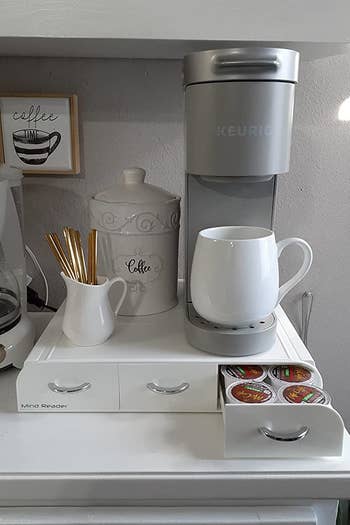 We hope you love our recommendations! While every product is independently chosen by our editors, BuzzFeed and our publishing partners may collect a share of sales or other compensation from the links on this page. You can read more about how our affiliate partnerships work in our Editorial Standards & Ethics Guide. Your guests will be quietly rethinking their own life choices the second they open your pantry and see this dedicated tea organizer. Promising review: "I LOVE LOVE LOVE these organizers!! I almost did not purchase them due to the reviews saying that larger than a C-cup would not fit into the bra organizer. At just $15 for four organizers, I took my chances and ordered two sets of four. I figured, worst-case scenario, I would have to cut the dividers out of the bra organizers. I wear a 32DD, and the bras fit beautifully in the organizers. I am so glad I took the chance and did not listen to the reviews. I would have missed out on the best, cheapest organizers I have ever found. I ordered another set for tank tops and other extras I did not think of before. I will also order my boyfriend the brown ones for his drawers. Great product for a great price!" —Elizabeth L. Blackwell Get a four-pack from Amazon for $15.87 (available in seven colors and in a seven-pack). Cilpastore is an Etsy shop that provides awesome handmade modern and mid-century-style organizers and home decor such as book dividers, vinyl organizers, towel holders, and more. Promising reviews: "Excellent product and seller! They look exactly the same or even better! Very happy with my wood music dividers." —Guillen Campo "I was happy enough with these dividers that I ordered an additional set of genre dividers, with the names of my top 28 bands/artists on them. They are a very nice organizational and aesthetic touch for my treasured record collection." —Timothy Reyner Get it from Cilpastore on Etsy for $33.28+ (originally $44.37+; available as a set of seven or 26 and in black or natural finishes). Nahanco is a small business that creates a number of clothing storage solutions. Promising reviews: "The struggle with hangers has been real for quite some time; I wish I had known about this thing sooner! Seriously, laundry is annoying enough, to not fight with hangers will be wonderful. It doesn't wiggle and seems sturdy. Hopefully, it stays that way because this has saved me a ton of room and hassle!" —Kara Adams "Working in retail for a million years, I know how amazing these can be in keeping your life less chaotic! I put off ordering for months, and I'm mad at myself that I did because these beat a box of hangers hands-down! I ordered two, one for dress/shirt hangers and one for skirt/pant hangers. They arrived today, seem to be made of the same metal that I've used in retail stores, appear to be sturdy, and are super easy to assemble! The only thing I had to stop and think about was which side of the base should face up. It comes with all the hardware and tools for assembly. A great buy!" —KatieLee333 Get it from Amazon for $27.59 (also available in packs of two, three, four, five, and 10). Promising review: "I have a tiny kitchen with only three drawers, so space is at a premium. My silverware organizer took up almost all of one drawer, so this organizer is a godsend. You can fit quite a few spoons, etc., in each slot. My beater attachments fit perfectly into the top two hollows. I will say I have to flip my forks over face down in order to be able to shut and open my drawer, but then the drawer itself is kind of shallow. You NEED this if you have a small kitchen with few drawers!" —mialro PS: You can get the knife organizer (also pictured above) for $13.99, too. Promising review: "I am so glad I got this. It makes for such great streamlined storage. Keeps things tidy and neat, and also helps me keep track of how many cups I have left to determine whether or not I need to add to my grocery list. It is very sturdy and I fit my machine on top. The top is very durable, hard plastic and does not buckle with the weight of the machine filled with water on top." —tunisianswife Get it from Amazon for $15.16+ (available in two sizes, three colors and in packs of four and eight). Promising review: "If you need to Marie Kondo your closet, this is really useful, and it looks really nice. I got the grey ones. Bought two to see how they were. Perfect. Bought six more. Loving it!!! Really recommended this product, ready to install and very sturdy." —Nicolò R. Promising review: "Perfect holder for hair hot tools like a blow-dryer and straightener, with room for other things like hair sprays, brushes, etc. in the front. Looks more expensive than it was. Highly recommend!" —LucyMK People also use this for storing the clothes they've worn, but you know, they could still get a few more wears out of them before wash day (looking at you, bras). Promising reviews: "I was a little hesitant to spend this much on this product, but glad I did. Now, my tiny bedroom looks a little more polished because I have eliminated the not-quite-dirty-clothes pile-on-the-chair-or-floor, and instead have this stylish ladder where I can neatly hang my clothes...and it looks lovely. It literally took a little anxiety away." —Dee Em Vee Get it from Amazon for $88 (available in three colors). Promising review: "Love this broom/mop holder. So nice to save space and stay organized. Holds them so firm and flat against the wall. Also has hooks that fold out as needed. I recommend this to anyone looking for space-saving storage!" —Jaclyn Get it from Amazon for $17.97 (available in four colors, in a two-pack, and with an additional small broom holder). Hang This Up Shop is a New Jersey-based Etsy Shop that creates handmade organization and storage solutions. Promising reviews: "I bought two sets and hung them in my finished garage. They lined up very nicely, my tools are perfectly out of the way, and look very organized." —Mark "This is my