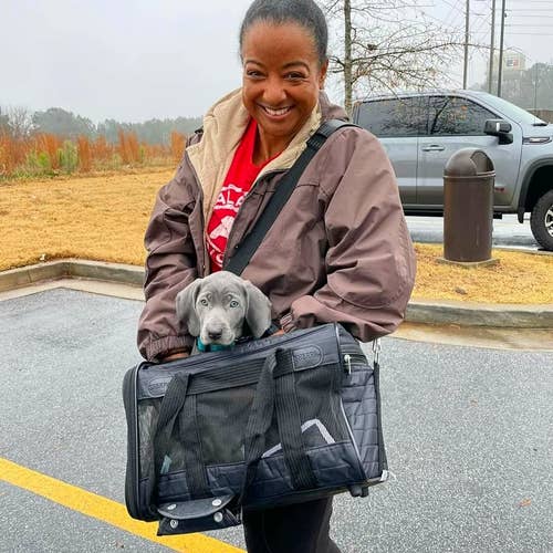 We hope you love our recommendations! While every product is independently chosen by our editors, BuzzFeed and our publishing partners may collect a share of sales or other compensation from the links on this page. You can read more about how our affiliate partnerships work in our Editorial Standards & Ethics Guide. Time to make traveling with your canine bestie as easy and comfortable (for *both* of you!) as possible. Traveling with your pup can sound fun, until it comes to the daunting task of choosing the right travel carrier for them. There are several boxes it should check, including being the right size, being able to withstand the rigors of travel, and making them feel safe and cozy (just to name a few!). As a dog momma myself, I'm always looking for pet travel products that'll make life easier for both of us. From sling carriers for the smaller pups to more safety-centered kennels for large dogs, I've curated a list of carriers that'll make traveling with your furry pal feel like the safe, stress free, *pawsitive* experience it should be — from the road to the sky and back home. Say hello to the crowd-pleaser of all dog carriers. It features mesh panels for ventilation, escape-proof locking zippers, top and side entries for easy loading, a waterproof interior base, a padded, detachable carrying strap, and a removable, machine-washable base liner. And! This baby's equipped with a patented spring wire frame that allows the rear end of the carrier to be pushed down several inches to easily fit under airplane seats in compliance with most major airline requirements. Reviewers say it leaves their pet plenty of room to move around, and one reviewer even mentioned their dog *chose* to sleep in there the entire night. Promising review: "Leading up to my Southwest flight, I was very nervous traveling with my four-month-old Goldendoodle. Thankfully, the bag worked out great! My Doodle weighs about 12 pounds, is 14 inches long, and is 11 inches tall. He was able to lie down in the bag and stand up with the zipper open when we were at the gate. We had an eight-hour journey with two-hour layovers both ways. My Doodle stayed calm in the bag 98% of the time with the help of some treats. I cannot recommend this bag enough. One pro tip that helped me the week leading up to the flight, I had my Doodle get into the bag for 15–20 minutes at a time and gave him treats so he was used to it once we got to the airport. I am very grateful to have had this bag for the trip." —Greg Reck Get it from Amazon for $42+ (available in three sizes). Shopping for a carrier on a budget doesn't have to mean sacrificing the most important factors of comfort and convenience, and this carrier proves it. It's designed with a four-sided mesh that not only makes it comfier and breathable for your pet, but also easy for you to check on them (and to ensure they can see you if they've got any separation anxiety!). It's also got two connecting loop handles for balanced carrying as a dual seat belt or luggage strap *and* has a super soft padded bottom. Who would've thought such an affordable carrier could give your pup such a tail-wagging experience? Promising review: "Love this! It is the perfect size for my 6-month-old pet. She loves it just as much and has gone inside to lie in it, which was so cute. The zippers work great! It’s roomy, no weird smell, definitely worth the money for sure! I love how you can open it up three ways! And, not only did they send this carrier, but they also added pet grooming wipes, which is awesome! I highly recommend this bag! I can easily store it in my closet until further use is needed! I can’t wait to take her to her vet appointment so she can get more use out of it. I purchased the bigger version of this so that she can grow into it and I won’t have to buy a bigger one later." —Shauna Wixson Get it from Amazon for $22.48+ (available in two sizes and six colors). The teacup-sized puppers are going to love this one! While airlines typically require a carrier with a more hard-sided construction, this is still great for using *at* your destination or long walks or train rides. Reviewers appreciate it for its thick, soft material and love that it gives their dog a large opening while still having a secure snap closure. It's also got an adjustable strap buckle, a big zipper pocket, and a safety back buckle. Sling carriers are also great for giving your pup the secure feeling of being carried by you without *actually* being carried by you. Promising review: "This is a great sling. I recently adopted a 6-pound chihuahua, and she’s fearful of people. This sling allows me to bring her out while still giving her a safe space. It’s been very helpful as we begin teaching her that people can actually be very nice. I ordered the medium so that she’d have some space, and I really think it’s the perfect size for her. I really like that it has snaps on the opening so that once she’s in, I can secure her, so only her head peeks out. The hook is a great feature as well, although we don’t need it. The thick strap is helpful on our walks, as even little dogs can get heavy, and the support is needed. I like that it’s so easy to adjust as well. My dog seems very happy and comfortable in it. Even though she’s fearful, she was happy in this sling right away. The lining is thin, so on cold days, I add a small blanket. Great quality, comfortable, easy to use, and my dog is happy. A+ from us!" —Heather Svoboda Get it from Amazon for $27.99+ (available in five sizes and eight colors). Pets that are too large to fly in the cabin of the airplane also deserve the safest, most comfortable experience possible. That's where this crate comes in! According to the brand, this kennel is the only double-walled crate on the market constructed with rotational molding. What does this mean? It means an exterior layer works to absorb the majority of an initial impact, and an interior wall provides another