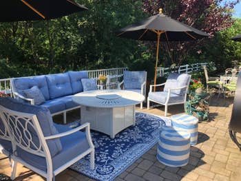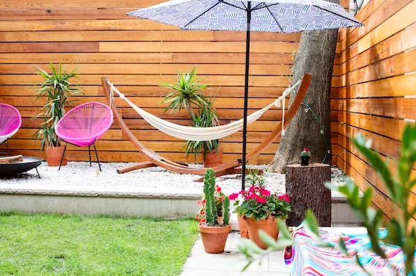 We hope you love our recommendations! While every product is independently chosen by our editors, BuzzFeed and our publishing partners may collect a share of sales or other compensation from the links on this page. You can read more about how our affiliate partnerships work in our Editorial Standards & Ethics Guide. You might just have to start stamping hands to make sure you don't have anyone sneaking into your parties! There are all kinds of ways to compete with your neighbors, but curb appeal is just one. You know the real heat is in the backyard, far(ther) away from your nosey neighbor's prying eyes. And it's almost time for peak backyard season, so you can start plotting how you can make yours the envy of the block. Read on for some ideas.... Promising review: "Perfect for our patio. Easy to clean and feels great on feet!!" —JS Get it from Amazon for $67.99+ (available in four sizes and seven colors). Promising review: "Living in Hawaii you have to select wise items that are weather-, salt-, and red dirt–proof, etc... In total I ordered 11 boxes to complete my yoga deck. I have a few left over to make steps on the back. Very pleased and happy. May order more for an outdoor shower project!" —Adazzle OK, so painting your concrete patio may not sound like the easiest upgrade but if you're no stranger to painting and want a big impact, give it a try! Promising review: "Excellent, easy to use and clean up. My outdoor patio is a little rough, and it took a full gallon to cover 200 sq feet." —RLB Get it from Amazon for $35+ a gallon (available in two shades of gray). Promising review: "I first used this product about two years ago on the awning on my RV. That awning was so bad that I thought I was going to have to replace it. After using this Scott's product as directed, the mold and mildew completely disappeared. This product definitely works and it works GREAT! What more can I say — it saved me nearly $500." —R. Latreille Promising review: "We had a 2005 truck parked on our paver driveway for years. The area in the photo was thick with oil leak residue. I tried several products that didn't make any difference. But with the "Pull It Out" product, the oil is gone! You can see the stark difference in the photo, with the area that was treated and the area that was not. This goes on as a liquid; it absorbs the oil from the bricks as it dries. Then I lightly scrub and hose it off, and voila! Gone! Even better, it's biodegradable!! I rarely post reviews for a product, but this product earned it. This is the best I have seen for taking leaked oil out of a driveway." —Robocop Promising review: "Planted a handful of the seeds in our front lawn area. Few months later, and we had a spectacular color array. Great flowers!" —Shane Check out this full ~stunning~ backyard makeover. (Seriously, the "before" images are gonna make your jaw DROP.) And check out more amazing before and afters on Sweeten. You can get a variety of similar terra-cotta pots from Amazon or The Home Depot. Promising review: "The weight of each pot is perfect. Light enough not to be heavy when filled with soil but sturdy enough not to get blown over too easily. The speckled finish is quite modern and can go with many different styles of decor. The only thing I’d ask for to be different is the drainage system… the holes are on a plateau inside the pot. This means that certain plants will suffer from root rot as there will be about an inch worth of standing water. As long as you’re careful though, this may not affect you. I have had these pots outside on an uncovered patio year round now.. they still look new." —A. C. Get them from Amazon for $62.99+ (available in three styles). Reviewers note that you should remove the bulbs before stringing up the strands and then install the bulbs. Promising review: "These lights were perfect for my patio, I've recieved plenty of compliments so far. The Edison light bulbs and beautiful and offer the perfect amount of lighting for any occasion...the clips were ideal for my eaves, the overhang of the roof, which made for simple installation...now just need to find a dimmer capable of handling the required wattage and the package will be complete." —Brody Vins Get a strand from Amazon for $14.79+ (available in six styles and lengths). Promising review: "These lights were just the thing to finish off our new yard and show pathway edges during the night. Worked right out of the box but I charged for a day in the sun before placing them. Work great and very happy with them." —Joseph H. Get eight from Amazon for $39.98+ (available in three sizes). Promising review: "I wanted to wait until the grass had a chance to grow before leaving my review, and I’m very pleased! The germination rate was quick, the grass came in thick and healthy, and it’s already looking great in my yard. Easy to plant, grows strong, and definitely worth it. Highly recommend if you want reliable results!" —Richard lademan Get it from Amazon for $28.99 (available in two bag sizes). Grampa's Weeder is a small biz. Made with a bamboo handle and powder-coated steel, it uses a simple lever system to made weeding easy. Promising review: "Oh my god, I friggin' love this tool. I bought this on a whim given we bought our first house and know nothing about caring for a yard. Boy has it come in handy. Our new house had a ton of weeds in the front yard and this tool helped me get most of them out in no time. In fact, the process of yanking out the weed was strangely satisfying! I don't think anyone can say that weeding is fun but this tool made it as close to fun as you can get, especially when you see a long root along with the weed you pulled." —JG Promising review: "Leaving mine out, so I did use landscape fabric and pea gravel under it. It keeps dogs from tracking in mud when it rains and from trampling my plants. Sturdy and convenient! I bought a second one. I love it so much." —Kindle Customer Get an 8