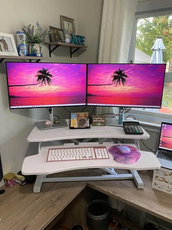 We hope you love our recommendations! While every product is independently chosen by our editors, BuzzFeed and our publishing partners may collect a share of sales or other compensation from the links on this page. You can read more about how our affiliate partnerships work in our Editorial Standards & Ethics Guide. An electric standing desk, memory foam armrest pads, and more little upgrades WFH-ers say they can't live without. Working from home has its benefits (ok, a ton of them), but it also means your work setup might not be totally optimized for sitting and focusing on a computer for eight hours straight. These small upgrades have the stamp of approval from remote workers who feel so strongly about them, they call them "lifesavers" — so it's worth taking note. From a standing desk (or standing desk *converter*) to a mini desktop whiteboard and ergonomic chair alternatives, these home office items can make a huge difference in your comfort and productivity. Promising review: "It is a lifesaver. If you can't fit or afford a full sit-stand desk, this unit has been going up and down a few times a day for 6 months strong. Also if you think you will be standing for more than a couple of hours a day, I assure you no. That's why the manual system is great — whenever you are tired, just grab the handle and place it down quick, it doesn't require thinking or waiting." —Dave Get it from Amazon for $129.99+ (available in three sizes and two material types). I have a FlexiSpot electric standing desk at home (this one, specifically) and love it — it's a great brand, and mine hasn't given me any issues over the past few years. Promising reviews: "This desk is a lifesaver. It's sleek, solid, and lifts and lowers with ease. It will be the perfect addition to your workspace." —Rebecca Jeanette "After assembling it, I am thrilled I chose this desk. With a press of a button, I can raise and lower it to appropriate heights for either comfortably sitting or standing (I'm 5'10"). The material itself is very sturdy. There are NO drawers, which, after 20 years of having the other home desk and having desks at work, I realized that drawers do nothing more than collect and store junk. Can't do that with this desk as this desk encourages minimalism and storing that junk somewhere else." —David Taylor Get it from Amazon for $169.99+ (available in five sizes and 12 styles). Bonus: It doesn't take up much space at all and can be stashed right underneath your desk, so it's not an eyesore like most workout equipment! Get a look at it on TikTok as part of a WFH standing desk setup! Promising review: "Having a limited space for my home gym, this thing is an INCREDIBLE addition!! I work from home and having the ability to hop on this thing regularly throughout the day is a lifesaver. The quality is top-notch, no issues whatsoever in the 3 months I’ve had it. Not having the room (in both my space and budget) for a treadmill, having cardio equipment that allows for a natural standing, upright position is critical for keeping my back healthy. The workout you get is also great for any and all fitness levels." —Brent Williams Get it from Amazon for $52.99 (also available in three other styles). See it in action in this TikTok! Its speed range is 0.5–6mph and its weight capacity is 220 pounds. Promising review: "Easy setup, good quality, easy to move. I’ve been using this under my desk in my home office for roughly 8 weeks now and it’s been a lifesaver! Now I can get my steps in while I’m answering emails and sitting in Teams meetings. Highly recommend if you’re looking for a budget-friendly option." —Amazon Customer Get it from Amazon for $289.99 (available in four colors). It has two HDMI ports — be sure to pick up a USB-C hub if you're planning to connect a MacBook. Promising reviews: "Bought the largest screen offered and have been using it to work from home for over a month. It has been perfect for my needs and probably will ruin me if I ever go back to an office. This screen saved my life." —V.G. "Just set this monitor up, and so far it’s earned all 5 stars! It was easy to assemble, it’s compatible with my MacBook Pro (with a USB-C adapter), and the picture is great! I just wanted another monitor for when I work from home, so having something available that was affordable like this was perfect for what I needed." —Allison H. Get it from Amazon for $77.97+ (available in five other models, including a 27-inch size). This stand fits any laptop from 10–15.6 inches and can be easily disassembled into three parts for easy transportation. Promising review: "Lifesaver ❤️ I had a deep turtle neck before using this laptop stand, and no more after using this item. This laptop stand saved my life. I cannot work without it. Thank you." —Andrew Ko Get it from Amazon for $15.29+ (available in nine colors). In the six-piece set, you'll get two 3"x3" bins, two 6"x3" bins, and two 9"x3" bins. Promising review: "These are lifesaving for clutter. My bathroom vanity drawer has always been a mess, and I can never find what I need. This product is amazingly perfect, so much so I bought a second set for one of the drawers in the kitchen." —Gentles Lewis Get a six-piece set from Amazon for $12.99 (also available in two larger sets). I've had this exact lumbar support pillow since 2018, back when I was still working in an office, and I can't express enough how much it's improved my posture and reduced back pain after long hours of sitting. I initially got it because I was stuck working in one of those awful office chairs with zero lower back support, and years later, I still use it at home. It fills the curve of your spine *perfectly*, and you can adjust the positioning as needed, with straps that go around the back of your chair to hold it steady. I personally use it in conjunction with an ErgoFoam footrest, and I never have back pain after working anymore. Promising review: "Saved my life. I b