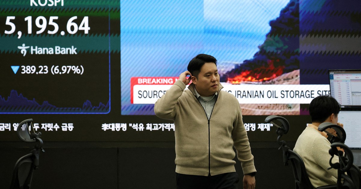 Oil and gas price hikes due to the war have rattled the global economy. Share Save The United States-Israeli war on Iran and Tehran’s retaliatory strikes across the Gulf region have upended global financial and energy markets, raising concerns of a global economic crisis – and even of a recession. Here’s a look at tell-tale signs that reveal the global economic fallout from this war: Since the US-Israeli strikes on Iran began on February 28, Tehran has launched a wave of ballistic missiles targeting Israel, US military bases, oil depots and other infrastructure across the Gulf region. Iranian attacks on several vessels passing through the Strait of Hormuz have also dramatically reduced traffic in the narrow channel, through which about 20 percent of global oil and gas supplies transit. On Thursday, Iran also attacked fuel tankers in Iraqi waters. All of this has combined to send oil prices soaring. As of Monday morning, Brent crude, the industry benchmark, was priced at $106 per barrel, up more than 40 percent from $72 per barrel on February 27. According to Muyu Xu, a senior crude oil analyst at Kpler, liquified natural gas (LNG) prices have risen even more sharply – by almost 60 percent – since the start of the war. On March 2, QatarEnergy suspended its LNG production after an Iranian drone attack, straining the global LNG market. Qatar supplies 20 percent of the world’s LNG. Prices of refined products from petrol and gas oil to jet kerosene and fuel oil have also seen significant increases, and that trend is expected to continue if energy flows through the Strait of Hormuz remain largely shut, Muyu added. “As crude oil and refined products from the Middle East Gulf are unable to reach buyers, countries, particularly in Asia, are scrambling to secure alternative supplies at higher prices and adopt emergency measures to manage inventories and demand,” she told Al Jazeera. About 84 percent of the crude oil and 83 percent of the LNG that passed through the strait in 2024 was bound for Asia, according to data from the US Energy Information Administration. China, India, Japan and South Korea accounted for nearly 70 percent of those oil shipments with about 15 percent bound for the rest of Asia, according to the agency. According to a March 9 report by Neil Shearing and his team of economists at the global macroeconomic firm Capital Economics, if the conflict is short-lived and Iranian attacks on the Gulf countries and in the Strait of Hormuz cease, “oil and LNG prices would fall back sharply with the price of Brent crude reaching $65pb [per barrel] by the end of the year.” But in case of a longer war, the report noted: “Oil prices would rise further during the conflict to around $130pb in Q2 [second quarter]. … Shipments through the Strait of Hormuz would resume in Q2 although prices remain higher than in the first scenario by year end.” “Even if the conflict is contained to three months, we think Brent crude oil prices could rise to an average of $150pb over the next six months or so,” the economists forecasted. As import costs for energy-guzzling economies are rising, their economic productivity is also beginning to decline. According to data analysed from Global Petrol Prices, a data platform that tracks and publishes retail energy prices across about 150 countries, at least 85 countries have reported increases in petrol prices since February 28. Some nations announce price changes only at the end of each month, so higher prices are expected for many others in April. So far, Cambodia has recorded the highest petrol price increase of nearly 68 percent, rising from $1.11 per litre (a quarter of a gallon) of 95 octane on February 23 to $1.32 on Wednesday. Vietnam follows with a 50 percent increase, then Nigeria at 35 percent, Laos at 33 percent and Canada at 28 percent. These price increases at the pump have led governments to take drastic steps to conserve fuel. Pakistan has introduced a four-day workweek for government employees with 50 percent of the staff working from home on rotation. Government offices in the Philippines have moved to a four-day workweek too. Thailand has made work from home mandatory for government officials. Myanmar’s government has imposed a rule under which cars may drive only on alternate days. In Sri Lanka, vehicle owners must register online to buy fuel, then use a QR code at the pump to purchase petrol or diesel. The move is aimed at regulating how much each individual consumer buys. All of this, economists said, impacts the productivity of economies. They manufacture less and deliver fewer services, further deepening the economic crisis. And this is just the start. Muyu noted that shipowners are also hesitating to take new orders as bunkering prices hit new highs every day. “They worry that the freight rates they receive may not be sufficient to cover rising fuel costs,” she said. “The economic impact of the Strait of Hormuz closure is only beginning to emerge. In the coming weeks, we are expecting to see further evidence of rising fuel prices, restrained demand [such as less driving or rationing] and eventually the effects filtering through to macroeconomic indicators such as inflation,” she warned. According to a report on Sunday from Bloomberg News, global stocks have fallen 5.5 percent since the war began with Asian stock markets being the worst hit. Here’s how the 10 biggest stock exchanges have performed since February 28: Frederic Schneider, a nonresident senior fellow at the Middle East Council on Global Affairs, said Asian and other stock markets falling more than the US reflects their larger exposure to the energy crisis. It is also reflective of the fact that the US remains a global anchor market and many of the corporate winners of the war, including defence and oil corporations, are based in the US. Russian stocks, meanwhile, have trended upwards as “Russia is a major non-Gulf hydrocarbon supplier stand