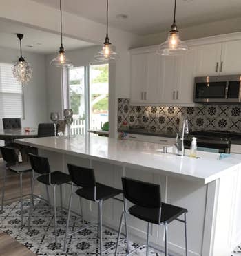 We hope you love our recommendations! While every product is independently chosen by our editors, BuzzFeed and our publishing partners may collect a share of sales or other compensation from the links on this page. You can read more about how our affiliate partnerships work in our Editorial Standards & Ethics Guide. Selling your old place (or at least making it look like you are) has never been this easy. Each pack is heat-resistant and moisture-resistant, plus easy to wipe if they get dirty. If you'd like to create the tile layout above, it's so easy: certain tiles come with an area called "overlap here," so you'll know where each tile goes! Just align a tile with the jagged edge in the "overlap here" area and you'll get that tile overlap effect in no time. Promising reviews: "I absolutely love this backsplash!! It was easy to install and looks like real tile once it’s on the wall! I would definitely recommend this product to anyone looking to add backsplash to an area of their house while staying on a budget. It will turn out looking great! JUST A NOTE: we used an adhesive spray to to make sure the tile stays in place. Better safe than sorry!" —Anna "Turned out beautifully! Before and after photos attached. I did not install it, so I can’t say how easy it was. This was an economical alternative to a real backsplash for a rental property. I will update my review if I see any problems after going back over there today. Very impressed!" —BGFAtlanta Get a set of 10 from Amazon for $19.99+ (available in 10 styles). Promising review: “I seldom write reviews unless the product is excellent. We have had pet stains on our upstairs carpet for a while and due to heavy foot traffic, it was deeply embedded. I had two separate services come and use steam or water and there was little to no effect. I read every spot removal information that I could find online and liked what was said for this product. I cannot believe how well is works. We used a heavy spray, used a wet mop to really rub it in (until it foamed), let it sit for a while and then vacuumed. I truly could not believe the difference. This product really works (and I've tried many - that didn't!). Thank you Folex for my nice looking carpets.” —Elizabeth Thompson Get it from Amazon for $6.99+ (available in two sizes and as a multi-pack). Promising review: "We were selling our house. I needed to paint my front door and dreaded the prospect of spray painting it which would entail masking off large sections and finding an area large enough for spraying. Finding a brush-on paint was a game changer. It does dry quickly. Be ready to work in sections, smooth your paint strokes as you go as it will remember those strokes. There was a natural grain pattern to my door so I just followed that and it came out perfectly. Was so happy we took the time to do this. It really made our front porch pop having a fresh-painted door." —S. Abbott Get it from Amazon for $41.01+ (available in 13 colors). The cord measures 47.2 inches, so you can adjust the height and create the decor aesthetic you'd like! Promising review: "These lights are one of those lucky finds that just work out perfectly. We finished a remodel about two years ago and bought these lights as the pendant lights over the island. I absolutely love the look of them! We bought the old-fashioned-looking Edison LED warm lights for them. I still can't believe that these lights were so inexpensive. They were such a perfect fit! I just thought I'd leave this note for anyone else considering them after I looked them up to see if they were still available after my teenager set one swinging and I was worried about them breaking. They didn't break, but they are such a good price, I might just buy an extra one to store in the garage for any just-in-case moments in the future!" —Stephanie Get it from Amazon for $38.25 (bulb *not* included), and a four-pack of Edison bulbs for $19.99. This converter's brace adjusts to fit recessed cans that are 4, or 6 inches. Promising review: "This product works exactly as advertised. It converts a recessed light so that you can install another light fixture, and it does not require that you remove the metal can from your ceiling. This is convenient because these cans can be obnoxious to remove, and the hole left in your ceiling is probably bigger than you want for your new fixture anyway. My large dining room stupidly had ONE recessed light for the entire room. I used this product to install a chandelier." —The Mamos This closet system includes six to seven small shelves, two larger shelves, two top rails, 16-19 brackets, four to five 47.5-inch uprights, two 25-inch upright extensions, and one to two hang rods. It works with any reach-in or walk-in closet with at least one wall that's 3 to 8 feet wide. Promising review: "I love this so much! I had a regular closet railing with the hanger racks. After having it fall for the second time, although we used heavy duty toggles, I refused to have my husband put it up again and I did my research. This item was highly rated and I get why; it's amazing. There are so many ways to organize your closet using the system. I have a few racks that I am not able to use and that is okay with me! I know when I change my clothes over for summer, I can adjust for a lot of Maxi dresses and T-shirts, as well as have room for my shoes! I was able to store so much! Although we are renting, I had to do something to keep my clothes from falling and this will move to my next home! I like it so much we got one for the pantry too...oh yeah, that one will be coming out with me when we move too!" —Sandi Get it from Amazon for $147+ (available in two sizes and two colors). Promising reviews: "Living in Hawaii, you have to select wise items that are weather-, salt-, and red dirt–proof, etc... In total I ordered 11 boxes to complete my yoga deck. I have a few left over to make steps on the back. Very pleased and happy. May order more for