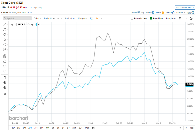 With a market cap of $14.2 billion, IDEX Corporation (IEX) is a diversified industrial company that designs and manufactures highly engineered fluidics systems, dispensing equipment, and specialized components used across a broad range of end markets. Its products are typically mission-critical, supporting precise fluid handling, flow control, and application-specific performance in industries such as healthcare, life sciences, water treatment, energy, and industrial manufacturing. Companies valued at $10 billion or more are generally considered “large-cap” stocks, and IDEX fits this criterion perfectly. IDEX’s core strength lies in its highly specialized, application-driven product portfolio, supported by a decentralized operating model that fosters innovation and responsiveness to customer needs. The company also benefits from recurring revenue streams through aftermarket parts and services, as well as strong margins driven by its focus on niche, high-value applications rather than commoditized products. Following the Fed's Rate Decision, the S&P 500 and Dow Fall to New Closing Lows for 2026 As Tesla Gears Up to Launch Terafab, Is TSLA Stock a Buy? Should You Buy Datavault Stock Before March 19? Get exclusive insights with the FREE Barchart Brief newsletter. Subscribe now for quick, incisive midday market analysis you won't find anywhere else. Despite its notable strengths, IEX shares have retreated 12.4% from their 52-week high of $217.15 touched on Feb. 6. Shares of the company soared 7.1% over the past three months, outperforming the State Street Industrial Select Sector SPDR Fund’s (XLI) 6.9% surge over the same time frame. IEX stock has gained 17.3% over the past six months, lagging behind XLI’s 8.1% rise. In addition, shares of IDEX have soared 3% over the past 52 weeks, compared to XLI’s 25.3% rally over the same time frame. While the stock has been trading above its 200-day moving average since early December, it slipped under its 50-day moving average recently. Idex has lagged the broader market over the past year due to a mix of muted organic growth, margin pressures, and cautious forward guidance. Weak underlying demand across key end markets has limited revenue momentum, while declining earnings efficiency and returns on invested capital have weighed on investor confidence. Additionally, the stock’s relatively full valuation has constrained upside, particularly in a macro environment marked by slowing industrial activity and spending uncertainty, leading to softer sentiment compared to the broader market. However, its rival, Eaton Corporation plc (ETN), has declined 2.9% over the past six months, trailing IEX, but its 24.1% return over the past year surpasses IEX. The stock has a consensus rating of “Moderate Buy” from 13 analysts covering it. Its mean price target of $225 represents a 18.3% potential upswing from the current market prices. On the date of publication, Kritika Sarmah did not have (either directly or indirectly) positions in any of the securities mentioned in this article. All information and data in this article is solely for informational purposes. This article was originally published on Barchart.com