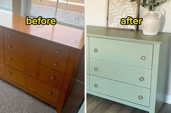 We hope you love our recommendations! While every product is independently chosen by our editors, BuzzFeed and our publishing partners may collect a share of sales or other compensation from the links on this page. You can read more about how our affiliate partnerships work in our Editorial Standards & Ethics Guide. If these products had jobs, they'd all be up for employee of the year. Country Chic Paint is a family-owned small business that specializes in all-in-one paint. Promising review: "I've bought a total of four of these things. I went on a kick of painting all of my generic black/dark brown Ikea furniture. I used this on both the shiny/smooth furniture and the wood furniture, and it worked well on both of them. It definitely worked better on the wood furniture, though. The paint was unexpectedly very easy to use, and the color came out a LOT prettier than expected! It was easy to clean off my hands and brushes, and the paint came right off my clothes in the wash as well. Overall, I'm very very pleased with this paint and will purchase more if I need any crafty paint in the future." —Anna "I saw this on TikTok and it looked so easy. I've hated my TV stand since I bought it. It was all black and just brought the room down. I used two coats and it is perfect! 10 outta 10 recommend!" —Gig94Em Get it from Amazon for $29.95 (available in 59 colors). Soak your hair in this elixir for 30ish minutes up to three times a week. It works for all hair types. Promising review: "I just can't believe the difference in my hair!!! I'm in my '60s, and my hair was dry and dull because of my medications. I just hated my hair. I bought this not expecting too much, but was I wrong!!!! I left it on for 30 minutes because I wanted the best result possible. Wow!! My hair feels wonderful, it's fuller and thicker looking, body galore, and I just can't quit looking at my hair. I will NEVER quit using this!!!" —lucymae Promising review: "We purchased this to fill some patches in our backyard that were damaged by our puppy. This seed works like a charm. The one caveat is that you really do have to water it a bit every day. Once it takes off, though, it grows pretty quickly! Within one week of planting this, we had one-inch long grass blades. One month later, all the patches are gone. Highly recommended!" —Jessica N. The brand recommends applying twice a day for best results. Read more about how Q10 benefits the skin from the National Library of Medicine. Promising review: "I’ve been using this for a few years and love it! I had loose skin after losing weight, and this gel has been a game-changer, with noticeable improvement in my skin’s texture and firmness in just a few weeks. I use this gel on my thighs, stomach, and underarms. I pair it with Nivea’s body lotion for the rest of my body. A little bit goes a long way, so the bottle lasts a while. I switched over to another gel for a month a bit ago, and I noticed my skin returning to uneven firmness and texture. Once I went back to using this product, I noticed improvements within a few weeks again. So, this isn’t a cure, but with continuous use, results are maintained to keep my skin firm, moisturized, and even textured." —Morgan It also works for non-pet stains like ink, soda, coffee, and more. Promising review: "Our poor older pup started having some incontinence issues and had several accidents in the house. I was really frustrated until I found these. They work amazingly well. They're small, so if the area was larger I had to use two or three, but they pulled up stains and saved the house from being smelly. I even used one on an older stain (that I'm pretty sure wasn't pet related) and it came up after leaving it on for about 24 hours. I make sure to keep a supply of these in the house at all times now." —MC Get a pack of 20 from Amazon for $34.74. Promising review: "I swear by this. Been using it for about a year now, it goes on every day and gets all the redness off my face, when I’m in a hurry I just top it off with a little powder and I’m done but it’s a perfect base layer for any makeup routine if you had a lot of redness like I do." –Andrea Get it from Amazon for $10.97+ (available in two sizes and also other styles). Promising review: "I have a 2.5-carat wedding ring and have a hard time really finding anything that gets that 'first day' sparkle back. With the Dazzle Stick, it shines again. Thank you so much!" —C.Skinner Bonus: They just released two new shades, so people with darker complexions can finally try it! Promising review: "Took years off my eyes! This product is so reasonably priced. I came across a TikTok promoting this and decided to take a chance since the price was super reasonable. My eyes looked brighter in a good way, and the concealer worked so well that I felt I looked younger. I got compliments from friends asking what I did differently with my makeup. I recommend it." —Monica T. Get it from Amazon for $6 (available in four shades). Promising review: "Wowwww!! I thought we were getting a lot of fur off our mini Maine coon mix with our regular cat brush, but I had no idea how much we were missing until I bought this comb! Bella is visibly sleeker and happier after two good de-shedding combing sessions. The best part is that she LOVED it, which says a lot, because she typically will only allow a few swipes of the brush at a time. But with this comb, she even let me get her BELLY fur!!! For a cat who rarely likes being touched for more than 10 seconds, that is incredible! 5 out of 5 stars, telling everyone I know about this comb!!" —Rebecca Read more about choosing skincare products if you have rosacea at the American Academy of Dermatology. Promising reviews: "This is a [swap] for the Tower 28 spray that's 28 bucks for 4 ounces. I use this after cleansing my face before toners or serums. It's healed my acne. Also great for eczema. I have recommended this to so many people. Thanks, Biotech, for sa