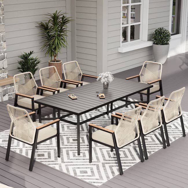 We hope you love our recommendations! While every product is independently chosen by our editors, BuzzFeed and our publishing partners may collect a share of sales or other compensation from the links on this page. You can read more about how our affiliate partnerships work in our Editorial Standards & Ethics Guide. Skip the plane ticket and spruce up your existing outdoor space. Promising review: “I love that the bowl of this firepit is not bolted to the frame and can be independently lifted out. It makes it so much easier to take care of. The assembly was extremely easy. The lid is sturdy and also easy to handle with the included hook. My absolute favorite thing about this firepit was that it came with a cover included. This firepit is sent to you ready to be taken care of well and easily. The cover seems to be water-resistant and has an elastic band at the base and is simple to put in place. The size is perfect and easy to handle. It is lightweight whether the bowl is in the frame or you are carrying each piece separately. If you have been looking for a great and easy-to-care-for firepit, you found it. —anonymous Promising review: “Absolutely adorable!!! So easy to put together and cute as can be. What a perfect kid’s chair for the money!!!! Kids and animals all love it. Walmart is truly stepping up their design game.” —Holly Promising review: “We bought these lights for an outdoor patio wall. They are perfect. The size is medium, large enough to give light but not overpowering. They were simple to hang and the look is just great. The price was right too.” —Sharon Promising review: “We lined about 12 of these up for a backyard party and they totally transformed our backyard. A very inexpensive touch for a loud statement. We had some before and they lasted a couple of years! Highly recommend!” —paige Promising review: “So impressed with the quality! I think we are going to get another one!” —jill Price: $405.99+ (available in five colors) Promising review: “Best product. Kids are in heaven, and grandma as well. My daughter bought this for her grandbabies. Boy, it keeps all six busy.” —Robyn Promising review: “My new 15-foot umbrella has made my outdoor living space complete! The solar lights make evening entertaining special. It completely covers my outdoor furniture and offers not only good shade but also protects my patio furniture from the rain. This was a great purchase!” —Sandra Price: $159.99+ (originally $214.99; available in 12 colors) Price: $189.99 (available in two colors) Price: $499.99+ (available with or without a cover) Promising review: “Very nice sturdy lounges with thick cushion that keeps its shape after seating. My husband put it together without my help. We got 2 of these and they look very nice next to each other. Love the trays underneath as they come so in handy, eliminating the need for other little tables. We have them under patio shade and we live in California, not sure how they would do in full sun. We have them covered in nice pocket beach towels though! We would definitely recommend these lounges!” —Sandina Price: $335.97 (originally $361.74; available in 14 colors) Promising review: “I’ve put together quite a few pools and this is the easiest one so far. Everything snaps together well and disassembles easily. Struggled with draining at the end of the season but that was likely user error, lost the instructions. Survived the summer with my kids, no issues.” —Erica Price: $228+ (originally $299+; available in two sizes and also in styles with floats and games) Price: $349.99+ (available in four colors) Promising review: “These chairs were a smoking hot deal so of course we had to get four for our firepit area. They were extremely easy to put together. The required hardware was very organized and the tools required were included. We love that they fold up for easy storage. Highly recommend these chairs.” —DLayne Price: $79.99 (originally $239.99; available in 14 colors) Price: $109.87+ (originally $122.09+; available in five colors) Promising review: “Really love this fountain. Not too big and not too small. It looks more expensive than what it costs. The setup and assembly took 10 minutes. The sound from it is just wonderful. I recommend this fountain and so glad I bought it.” —GianC Promising review: “Great value for the money, recommend!” —Kathy Promising review: “Better Homes and Gardens planters are quickly becoming my favorite. And this extra tall one is no exception. I love the textured design on the outside. It has very sturdy walls and should hold up for the long term. I was pleased with the first one I bought, so I bought a second for the back deck. I'm excited to have one of this height to use as a statement piece with other average-sized pots in both locations. They have a rubber plug in the drain hole, so it can be used either way.” —Walmart customer Price: $328.99+ (originally $599.99+; available in three sizes and three colors). Promising review: “This has become my favorite piece of outdoor furniture. The canopy can be adjusted to ensure I'm always protected from the sun. It's comfortable and sturdy enough for my elderly mother to sit on it and get up from it without assistance. I might get a second since I like to sit with my legs up so that others can enjoy it too.” —Angela Price: $107.99+ (originally $179; available in seven colors) Promising review: “Great swing. Easy to put together, comfortable, sturdy. The chain is positioned in a way that doesn't interfere with your arm or elbow. Cushions were nice, although they were more of a rust color than red. Love it.” —Judy Price: $112.51+ (available in two cushion colors and two frame colors) Promising review: “This is perfect for our herbs. Best thing we ever got for the garden.” —Kim * Things To Make Any Closet In Your House, Well, Better * Easy Ways To Help Make Your Backyard The Best On The B