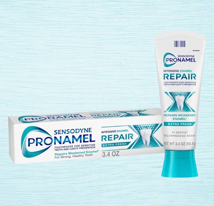 We hope you love our recommendations! While every product is independently chosen by our editors, BuzzFeed and our publishing partners may collect a share of sales or other compensation from the links on this page. You can read more about how our affiliate partnerships work in our Editorial Standards & Ethics Guide. With this list of toothpastes, mouthwashes and more, you may finally be able to eat that ice cream. “Tooth sensitivity can indicate underlying dental issues such as cavities, gum recession, enamel erosion, or other oral health problems,” Wei said. “If left untreated, these issues can lead to more serious dental problems, including tooth decay, infection, and even tooth loss.” It’s also a common issue, according to Wei, that happens when dentin, the inner layer of the tooth, is exposed. Dentin is normally protected by enamel or cementum, a layer under the gum line that protects the tooth root and can be exposed by gum recession. Wei, along with other dental health experts that we consulted, said that maintaining a good oral hygiene routine — one that involves brushing your teeth twice a day for two minutes with fluoride toothpaste and cleaning between your teeth with an interdental cleaner daily — is key to good oral health. And to find the specific products that they suggest especially for sensitive teeth, read ahead. The experts consulted for this story do not necessarily endorse the products ahead unless otherwise noted. "Using a soft-bristled toothbrush can help prevent further enamel wear and reduce sensitivity," Wei said. He suggests brushing gently to prevent further aggravating sensitive teeth or potential gum recession. This economy six-pack of toothbrushes that we found on Amazon has 12,000+ ratings, and the toothbrushes are intentionally designed to thoroughly clean teeth, without being overly abrasive. They have over 20,000 BPA-free and ultra-fine bristles that are densely packed into the brush face. Get them from Amazon for $7.99+ (available in 10 color combos). Cosmetic dentist Dr. James Heaton said that if your sensitivity is mild to moderate, a good place to start is with desensitizing toothpastes that contain potassium nitrate, like this popular enamel-building formula by Sensodyne, which Heaton called a "solid option." According to Dr. Ruchi Sahota, consumer advisor spokesperson for the American Dental Association, these types of toothpastes "contain compounds that help block transmission of sensation from the tooth surface to the nerve and usually require several applications before the sensitivity is reduced." This Sensodyne toothpaste — which has 57,000+ ratings and 4.7 out of 5 stars on Amazon — claims to "inhibit demineralization, repair microdamage and rebuild enamel strength," according to the brand. Get it from Amazon for $7.47 (available in two flavors). Both Heaton and Wei said to look for toothpastes containing stannous fluoride, an ingredient that can "help block the tubules in the dentin (the layer underneath the enamel) that lead to the nerves of the tooth," according to Wei. Based on this suggestion, we selected Colgate's Total Active Protection toothpaste, a deep clean formula that not only features stannous fluoride as its main active, but also promises 24 hours' worth of antibacterial protection to prevent cavities, bad breath and more common oral health concerns. Another toothpaste option suggested by Heaton is the Crest Pro-Health Sensitive and Gum formula. This unflavored paste also contains stannous fluoride and works by creating a shield of protection around the tooth that fends off sensitizing foods and liquids, while also fighting off harmful oxidants that may be damaging to the gums and may even be able to help reverse gingivitis. "Rinsing with a fluoride mouthwash can help strengthen the enamel and reduce sensitivity," Wei said. "Some mouthwashes containing alcohol can irritate sensitive teeth and gums, [so] opt for alcohol-free mouthwashes that are gentler on your oral tissues." Sahota also underscored the significance of fluoride, a naturally occurring mineral that helps in preventing tooth decay by strengthening your enamel, making it more resistant to cavities. The Listerine Total Care mouthwash (which we selected) is an alcohol-free formula in a mild, yet refreshing mint flavor and powered by fluoride. The brand claims it provides 50% greater strengthening of weakened enamel than just brushing alone. Get it from Amazon for $7.97+ (available in two sizes). Dr. Brandi Hair, a dentist and spokesperson for the Academy of General Dentistry, mentioned hydroxyapatite as a key ingredient to look for if you have sensitive teeth. We've previously been told by dentists in prior dental health coverage that very preliminary studies suggest that hydroxyapatite may be as effective as fluoride toothpaste in strengthening the enamel. Based on this, we selected the Carifree anti-cavity maintenance rinse, a mouthwash that has actually been recommended to us before by New York City-based dentist Dr. Inna Chern, who said she uses it in her own practice. "[It] balances pH, helps dry mouth and aids in balancing bacterial load/aiding in gingivitis prevention," she previously said. The rinse improves tooth sensitivity, is alcohol-free and contains xylitol to help with tooth remineralization and reduce plaque buildup. You can get it in three flavor options, and it's worth noting that it also features fluoride, which is difficult to find in formulations that use hydroxyapatite as its active ingredient. According to Wei, sugar-free gum containing xylitol can help stimulate saliva production, which can help remineralize enamel and reduce sensitivity. Using this information, we chose to include this dental defense chewing gum that's both sugar- and aspartame-free, but contains xylitol, a sweetening alternative that may prevent certain odor-causing bacteria from developing in the mouth and strengthen tooth enamel. You can find this Spry gum