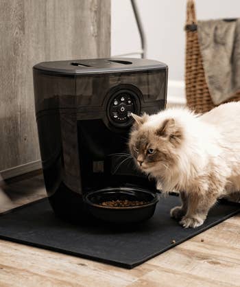 We hope you love our recommendations! While every product is independently chosen by our editors, BuzzFeed and our publishing partners may collect a share of sales or other compensation from the links on this page. You can read more about how our affiliate partnerships work in our Editorial Standards & Ethics Guide. Picture this: Your kitty will no longer wake you up before dawn screaming for food *and* they'll be fed when you leave home for more than a few hours. Shopping for the light of your life (aka your cat) can be challenging, especially when you want a product you can trust to function properly and feed them on time. Cats have vastly different needs, so automatic cat feeders are not a one-size-fits-all item. There are Wi-Fi devices that work with a smartphone app, feeders with built-in cameras, ones that are specifically designed for wet food, and more. Rest assured, you'll get your money's worth with an automatic cat feeder that takes care of meal time for you. What's better than an investment both you *and* your kitto will benefit from? The 5-liter model can store up to a whopping 5 pounds of food, which means you won't have to refill it as often. You can even program their mealtimes directly from the smartphone app. Dispensing manual feedings is also an option. Best of all, you won't be woken up at the crack of dawn with a four-legged tyrant screaming in your ear. Bless! Psst — It also has a built-in desiccant bag and sealing strip to keep food fresh! Promising reviews: "We are vacationing for a month in Arizona and wanted an automatic feeder for our cat in case our cat sitter couldn’t get to our house. We can add an extra feeding remotely. We are very pleased with our purchase. We can easily adjust the amounts and times of feeding, even from a thousand miles away. When the cat hears the voice say 'mealtime,' she comes running. We are able to control her diet because we aren’t arbitrarily feeding her." —Jan D "I was worried this wouldn't work, but it's extremely simple to use. I have cameras that watch my cats when I'm away, so to test it, I fed my cats through the app and went to view the camera. I can see it feeding them live with no delay. I have it set to a schedule, so even when I'm at home, my cats don't wake me up at 5 a.m. demanding to be fed. And I know it's working because I can hear it go off every day at the scheduled time." —s a Get it from Amazon for $89.99 (available in two sizes, in black or white, and in a dual-bowl style). This wallet-friendly option has all the bells and whistles you need to keep your feline happy without spending a fortune. It allows you to program up to six feedings per day and can hold nearly 17 cups of dry food in the airtight storage. It allows you to record a 10-second meal call with your voice that plays when a feeding is dispensed. You can also add three backup D batteries to ensure the feeder keeps functioning during power outages. Bonus: The dishwasher-safe hopper *and* bowl can be easily disassembled and cleaned. Promising review: "This is great for me since I get home at different times and can't always be home at feeding time. It's reliable and easy enough to program if you read the instructions. The portions make it so your cats don't overeat — just do some basic measuring and testing with the one-time feed button. If you already feed them from a gravity feeder, then just experiment over a week or two and look up recommended feed amounts for the weight of your animal. Extremely long battery life — I don't even bother plugging mine in, and I don't need to use the voice feature because the sound of the food hitting the bowl sends them running." —high-o silver Get it from Amazon for $39.99+ (available in white or green and in three styles). Using an automatic cat feeder may require more diligence in multi-pet households, especially if any of 'em are on a prescription diet. This is also helpful when you have a food thief on your hands who will try to steal their sibling's leftovers! This feeder pairs with your cat's microchip, so only they can access it. When they walk away, it closes to protect any food they may have left in the dish. Each dish can hold 13.5 ounces of wet or dry food. The lid closes and forms a tight seal, helping retain moisture and keeping food fresher longer. Note: This feeder is compatible with 9-digit (Avid Secure), 10-digit (FDXA), and 15-digit (FDXB) microchip numbers. Check with your vet if you're unsure about your pet's microchip number! BuzzFeed editor Jenae Sitzes says: "I've had my microchip pet feeders from Sure Petcare for a couple of months now, and while it was a pricey investment, it's been worth every single penny and has alleviated a ton of stress around my cat's meals. One of my cats, Sneaky, always wants to eat his brother's food and has a tendency to be overweight. Separating them for meals just wasn't working — they would whine at the door and simply not eat enough unless they could eat side by side and have free access to food throughout the day — but I also couldn't be sure that my younger (and much smaller) cat, Chicho, was eating enough with Sneaky gobbling up part of his meals, too. When my vet started throwing around the word "diabetes" as a very real concern if Sneaky didn't start sticking to controlled diet every day, I knew I needed to finally cough up the money for microchip feeders — I mean, it'd be a drop in the bucket compared to the long-term cost of cat insulin. The setup was ridiculously fast, the open-close function works beautifully, and my cats learned how to use these almost immediately. Finally, Sneaky can *only* eat what's in his feeder, which allows me to control his calorie intake and see exactly how much food he's eating daily — and I can be sure that Chicho is getting *enough* food, too. This is also a fantastic solution if you have cats on different diets due to health reasons, and if one of them starts eating way less for some reason, you'l