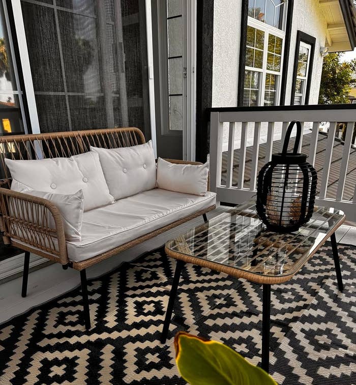 We hope you love our recommendations! While every product is independently chosen by our editors, BuzzFeed and our publishing partners may collect a share of sales or other compensation from the links on this page. You can read more about how our affiliate partnerships work in our Editorial Standards & Ethics Guide. From solar-powered string lights to colorful bistro sets, there's something for everyone on this list. Hauteloom is a small business in Georgia that sells rugs for the home. Promising review: "Delivered exactly as described. This is a really beautiful outdoor rug that adds coziness and pop to my deck. I put heavy items around the perimeter of the rug for a day to help flatten the edges. Great price for a great quality rug." —Amazon Customer Get it from Amazon for $42.64+ (available in nine sizes and three colors). Promising review: "I have two strings of this for my rooftop. They work so well and are so lovely. The dimming option is perfect, as these can be real bright." —Cinema4 Get it from Amazon for $32.99+ (available in two lengths). Promising review: "I love this loveseat ... when my cat is not hoarding it 😩 I spend so much time sitting longways on it, reading books. It’s lightweight but sturdy — I weigh over 200 pounds and feel supported while stretched out on it. It was also super easy to assemble. I normally hire someone to assemble anything that comes in pieces, but I was able to tackle this alone in about 45 minutes." —Brittney-Elizabeth Williams Promising review: "Its sturdy construction and classic design make it a standout piece for any patio. The robust cast-iron and steel frame ensure longevity, while the generous size accommodates comfortable seating. Elevate your outdoor space with this timeless and reliable garden bench." —Zhang_Shawn Get it from Amazon for $129.99+ (available in four styles and colors). Promising review: "These are great lights, we use them in our front and backyard. They are long lasting and create a resort-like appearance." —Michele Get it from Amazon for $35.69+ (available in three light colors and packs of four or eight). Promising review: "Scotts EZ Seed Patch and Repair Sun and Shade for Grass is truly a lifesaver for my lawn! I had numerous dead spots caused by my dogs' urine, and I needed a solution fast. After applying this magic dust as directed, followed by watering, I was amazed by the results. The dead patches transformed into lush, green grass in no time! This product definitely lives up to its promises and works wonders for repairing damaged areas on the lawn. Just be sure to follow the directions closely for best results. I highly recommend Scotts EZ Seed Patch and Repair Sun and Shade for anyone looking to revitalize their lawn effortlessly." —MJ Promising review: "Perfect size for our quaint balcony space in our condo building. The vibrant chartreuse color couples perfectly with our retro robin egg door. Lightweight, already assembled, and super easy to clean. The price makes this set a no-brainer. (It's cheaper than Target and CB2, but it is equal in quality.) Awesome summer buy." —Nouvelle Mere Get the set from Amazon for $94.99+ (available in six colors). Promising review: "This patio furniture is great for the price. One of the better known brands would sell a set like this for about $2,500–$3,000. It took a long time to put together by myself, but it was well worth the effort. My sister is on the market for patio furniture and I recommended this set to her." —Ant Rico Get it from Amazon for $799+ (available in two colors and with or without arms on the side chairs). There is also a matching curved walkway, if you need one! Promising review: "I went back and forth deciding whether I wanted to buy this. I was going to build my own walkway, but the labor involved and the price were more than I wanted to pay. So, this option looked appealing and some of the reviews were not positive. But, I absolutely love this walkway, and I’ve had it for well over a month now. It still looks like I just purchased it. I live in Florida so the weather is very harsh with heavy rains and extreme heat. This walkway has held up fine." —Jntqnn Promising review: "Lovely colorful flower pots. Perfect size to hold a single flower, and they add such a nice pop of color to my yard. Very easy to hang up, no hardware required! I’m getting a lot of compliments on them. I bought several sets and planted bright flowers in them. I have them lining the inside of my yard and on the front of the house. They add a lot of cheer and homeyness for a simple and cheap project." —Maegan Get a 10-pack from Amazon for $18.99+ (available in multicolor, black, or white and also in a larger size). Pick up a sturdy rust-resistant curtain rod while you're at it! Promising review: "These curtains are AMAZING! Beautiful and elegant. Hangs beautiful, very light blocking, keeps rain out of our Tiki bar, we can sit out there in the rain, and keeps the heat in on a cool fall evening when we have the fireplace on!" —Sara Bushendorf Get it from Amazon for $16.95+ (available in 10 sizes and 13 colors). Promising review: "We love this lounge chair!!! The price was fabulous!! (And just a note... If you take care of your things — i.e. cover up the swing with a tarp and bring the cushions in when not using it — It will stay like new. Sun and rain can age anything! Easy-peasy!!) This lounge swing is so comfortable and made very well!! It only took my hubby and I 25–30 minutes to put together. Take my word for it... you are not going to find a nicer lounge swing at this price!!" —Marash Get it from Amazon for $199.99 (available in 16 colors). Each light cycles through red, blue, white, and green. Promising review: "My pool is so old school and boring that I bought these to liven it up, and what a difference!! My pool went from 'meh' to WOW! The balls are easily inflated by mouth like a beach ball. Once inflated, a few hours in the sun, they ar