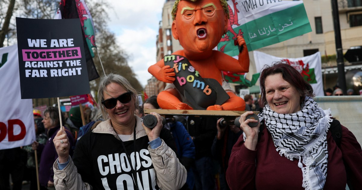 Crowds gather in London for what organisers say is the largest anti-far-right march in British history. Save Share London, United Kingdom – Hundreds of thousands of people have marched through central London in what organisers are calling the largest ever demonstration against the far right in British history. The Together Alliance march, backed by about 500 groups including trade unions, antiracism campaigners and Muslim representative bodies, brought together a diverse crowd of all ages from across the country on Saturday, converging on Whitehall near the Houses of Parliament. Organisers said that half a million people took part. Kevin Courtney, chairman of the Together Alliance, told crowds the march “gives us all confidence to carry on.” London’s Metropolitan Police put the figure considerably lower, at approximately 50,000, though officers acknowledged it was difficult to reach an accurate figure given how spread out the crowds were. The protest was met with a far smaller group of counterprotesters waving Israeli flags and Iran’s pre-1979 monarchical flag. Aadam Muuse, a trade union activist, told Al Jazeera that racism and Islamophobia had moved from the fringes into mainstream politics, and was “being pushed by parliamentarians”. He said the march was “much needed to push back against [Reform leader Nigel] Farage and his ilk,” adding that the populist party “must be defeated at the ballot box and Tommy Robinson challenged on the streets”. Al Jazeera’s Milena Veselinovic, reporting from the march, said demonstrators were pushing back against what they saw as “the politics of hate and division” in the United Kingdom. One demonstrator, activist and writer Hamja Ahsan, told Al Jazeera he was motivated to attend after a rally organised by the far-right agitator-activist Tommy Robinson that drew 150,000 people and was marred by violence that injured several police officers. Robinson is reportedly planning another rally in May. “We need to show them that we’re the majority,” Ahsan said. “At a street level, the far right won’t take over our streets.” He said the atmosphere on Saturday was akin to the Notting Hill Carnival, as the march united people from all backgrounds, “from pensioners to children”. Museum worker Charlotte Elliston told Al Jazeera that she also feels unsettled by the far right’s creeping rise. “You think this would never happen here, and then all of a sudden this might happen,” she said. “You see that it is getting scary.” Several left-wing politicians joined the demonstration. Independent MP Jeremy Corbyn posted on X that the “problems we face are not caused by migrants or refugees”, arguing they were rooted instead in “an economic system rigged in favour of corporations and billionaires”. MP Zarah Sultana said on X, “There’s one minority we should be angry at: the billionaires funding division while working class people can’t make ends meet.” Green Party leader Zack Polanski, Dianne Abbott and Greater Manchester mayor Andy Burnham were also among the crowds. The rights group Amnesty UK hailed the “historic demonstration”, saying marchers were “calling for a different vision of society – one which places dignity, compassion and human rights at its heart”. A separate march organised by the Palestine Solidarity Campaign, which assembled at Exhibition Road near Hyde Park, converged with the main demonstration during the afternoon. Eighteen people were arrested outside New Scotland Yard on Saturday after staging a protest in support of Palestine Action, the protest group which remains proscribed under the Terrorism Act despite a High Court ruling in February that the government’s decision to ban it was unlawful. The march comes amid rising racism as Farage’s Reform party surges in the polls. Hope Not Hate, an antiracism campaign group, warned earlier in March that the British far right is now “bigger, bolder and more extreme than ever before”.