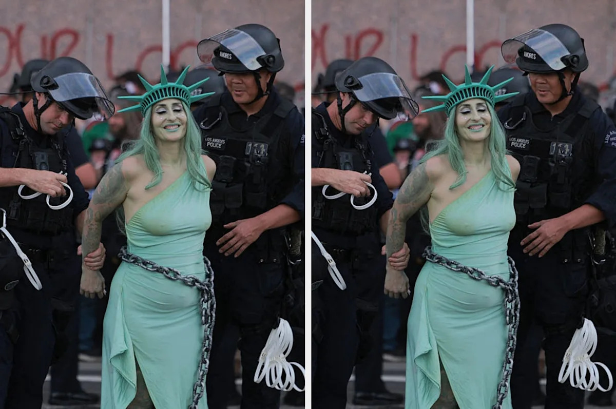 This Photo Of A "No Kings" Protester Is Going Mega Viral, And People Are Calling It A "Generational Shot"