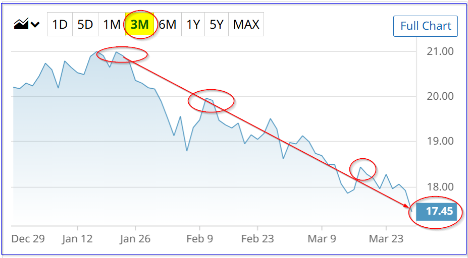 Ares Capital Corp. (ARCC) will announce a new dividend in just over a month. Will it cut the 48-cent quarterly dividend, which currently yields 11%? ARCC's drop seems to imply this, but investors should be skeptical. This article will explore an alternative way to think about ARCC using probability analysis, and a different way to play this stock. Occidental Petroleum Stock May Be at a Peak - Time to Sell OXY Covered Calls? Bear Call Spread Opportunities for March 30 The S&P 500 Is Down 7% but Caterpillar Stock Is Not. This Bull Put Trade Pays You to Bet on It. Tired of missing midday reversals? The FREE Barchart Brief newsletter keeps you in the know. Sign up now! ARCC closed Friday at $17.45, down 4.5% from $18.28 a week earlier (3/23), and off over 16.8% from a 3-month peak of $20.98 on Jan. 21. In short, investors are scared Ares Capital is likely to cut its dividend. But will this really happen when Ares Capital Corp is set to announce its next quarterly dividend at the end of April, just about a month from now? (Last year, it declared the Q1 dividend on April 29.) After all, it has consistently paid the same 48-cent quarterly dividend per share (DPS) for the past 14 quarters since Q4 2022. If it does so again, and keeps this payment for the next 4 quarters (i.e., $1.92), the ongoing annualized yield is 11.00%: $1.92 / $17.45 = 0.110 That's well over where it has historically traded. For example, Morningstar says it averaged 9.49%, and over the last 5 years, the average was 8.87%. So, if ARCC were to trade at 9.49%, it would be worth $20.23, i.e., +15.9% more: $1.92 / 0.0949 = $20.23 target price That's close to its peak price earlier this quarter. However, let's assume the worst. For example, even if the market is correct and the company has to cut its dividend by say 15%, here is what it might be worth: $1.92 - 15% = $1.632 DPS $1.632 / 0.0949 = $17.20 target price (TP) That implies ARCC might be a little overvalued (i.e., a potential drop of 25 cents from here, i.e., a -1.43% drop to $17.20). So, what is likely to happen? Last quarter, Ares Capital Corp reported 52 cents per share in net investment income and paid out 48 cents to shareholders. However, after realized and unrealized losses, the GAAP net income was just 41 cents. Ares Capital makes income by lending money to corporations and usually takes a senior secured lending position. However, given the credit issues this past several months, it seems likely the company's loans may be under pressure. Let's say that its investment income drops by 15%. Would that potentially force the company to cut its dividend? Possibly, but management has made a great deal about its “core earnings in excess of our dividends” (CEO Kort Schnabel). For example, even if earnings are temporarily lower due to unrealized or realized losses, Ares may be able to earn higher net investment income with new, higher-yielding loans. That might lead management to believe that its earnings will be strong enough in the long-term to keep the dividend stable. Probability Scenario. Let's say there is a one-third chance the dividend will be cut 15% and a 67% chance the dividend stays stable. Here is how that affects the expected target price (TP): 0.33 x $17.20 (see above) = $5.68 0.67 x $20.23 = $13.55 Total: $5.16 + $14.16 = $19.23 expected TP In other words, even under this scenario, ARCC looks 10% undervalued (i.e., $19.23/$17.45 = 1.102). In fact, even with using a 50/50 probability, the expected TP is still over 7% higher at $18.72: 0.5 x $17.20 = $8.60 0.5 x $20.23 = $10.12 Total: $8.60 +10.12 = $18.72 expected TP The point is that ARCC is at least 7 to 10% undervalued at today's price. However, that does not mean ARCC won't keep falling. As a result, one way value investors can play this is to sell short out-of-the-money (OTM) puts in one-month expiry periods. Selling short puts that have a lower strike price (i.e., out-of-the-money) over the next month allows an investor to set a lower potential buy-in point and also get paid. For example, the April 17 expiry period shows that the $16.00 put contract has a midpoint premium of 13 cents. That means an investor who secures $1,600 with their broker can enter an order to “Sell to Open” 1 put contract. The account will then immediately receive $13.00. That works out to a one-month yield of 0.815%: (i.e., $13/$1,600). As a result, over three months, if this can be repeated each month, the investment income is 39 cents (i.e., $0.13 x 3): $39 / $1,600 = 0.024375 = 2.4375% quarterly yield 2.4375% x 4 = 9.75% annualized yield In other words, repeating this play each month (assuming the premiums stay at this level) allows an investor to make almost the same yield as buying ARCC today. The potential buy-in point is lower as well. For example, even if ARCC falls to $16.00, the investor has a lower breakeven point, given all the income received. The bottom line is that ARCC looks undervalued here, and shorting OTM puts might be a way to play it. On the date of publication, Mark R. Hake, CFA did not have (either directly or indirectly) positions in any of the securities mentioned in this article. All information and data in this article is solely for informational purposes. This article was originally published on Barchart.com