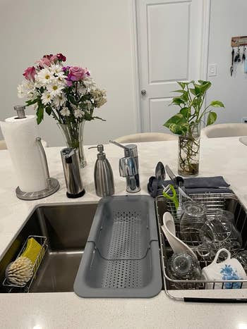 We hope you love our recommendations! While every product is independently chosen by our editors, BuzzFeed and our publishing partners may collect a share of sales or other compensation from the links on this page. You can read more about how our affiliate partnerships work in our Editorial Standards & Ethics Guide. Excuse me, gotta grab my stationery to write a little "thanks" to my air fryer. I personally don't think *anyone* works harder than the items in a kitchen. From a dual-zone air fryer that literally can cook two things at once and a FryAway cooking oil solidifier to a Dawn Platinum Powerwash (that I'm not convinced wasn't crafted by cleaning wizards) to a one-click Nespresso Vertuo Pop+, these items are putting in the EFFORT. It's about time you find out just how great they are, don't ya think? Promising review: "I absolutely love these silicone lids. It is so satisfying to lay it on a glass storage container and lift it up because the seal is so strong. I eat a lot of leftovers, and it is so easy to pop one of these on top of my dinner plate and throw it in the microwave. It drapes down the edges without creating a seal, so it keeps the food from splattering. I do wish that they offered color choices." —Candace Get a set of three from Amazon for $9.49+ (also available in a set of eight). Promising review: "This item was a splurge for me. I’ve been spending more time in the kitchen and have been looking for fun ways to elevate the vibe. I usually hide my oil away, but this is the perfect, convenient way to store it. It looks intentional and is very functional for someone like me who loves skipping the extra step of reaching into the pantry. Also, so far, no issues throwing this guy in the dishwasher." —4lexa Get it from Anthropologie for $108 (available in three colors). Promising review: "I love tulips and especially love this color scheme. I saw this set in a magazine and was thrilled to find it available here. It’s not exactly large, but it’s definitely adorable! So glad I bought it!" —cbs4818 Here's what BuzzFeed Shopping writer Emma Lord says: "I've owned one of these babies and have faithfully used it every week for upward of two years, and especially love it while working from home — it simplifies breakfast because I know no matter what assortment of groceries I'm working with, there are precooked eggs to add some protein to it (I like mine medium-boiled 🍳). If my dinner is boring or seems like it needs a little extra "oomph" to it, I'll throw in an egg from this too. Some reviews note that the alarm on it is a little loud, but the new models have significantly decreased the volume and sing a little song instead!" Promising review: "I saw someone on TikTok with this and gasped! Ordered it right away. I had no idea these things existed. Super easy and convenient and the hard-boiled eggs came out perfectly. I’m testing a batch now without punching a hole in the eggs to see how they come out. Because why not make an easy process even easier?!?! LOL." —Gina Get it from Amazon for $19.99 (available in seven colors). Promising review: "I got this so I don't always have to Google or ask Alexa about conversions. It's really cute, too. I use it a lot, so it's coming in handy more than I thought it would." —Kindle Customer Get it from Amazon for $9.95 (available in black or white and in horizontal or vertical). Psst, as you can see above, this set also comes with a crumb catcher where your stovetop meets your countertop! Promising review: "I've been using the foil ones and while they do the job, they're not so nice to look at. I like that this is black so it matches the original color of the appliances, but more importantly I like that this has a larger surface area to catch the drips that the foil ones never could before. They're also trim to fit, so they get right up into each burner without leaving gaps where drips can burn where it's hardest to clean. Overall recommended." —Michael Get an 8-pack from Amazon for $13.99+ (available in six colors and three sizes). Promising review: "I love this pitcher, it looks exactly as pictured. This is so festive and perfect for fun gatherings." —EDoodles This colander can expand from 14.5–19.5 inches. It's top-rack dishwasher safe as well! BuzzFeed editor Jenae Sitzes has and loves this product: "I have this colander in the pink color and absolutely love it! I don't leave it out on my sink permanently, but I've hung it right next to my sink using small Command hooks so I can quickly grab it and place it on my sink whenever I need to clean produce or drain pasta. I love being able to leave ingredients on it to drain while I work on other steps of a recipe, and it also leaves enough room in the sink for me to place dirty dishes or wash a pan without the dirty water going onto my clean ingredients. Highly recommend, especially for small kitchens!" Promising review: "I’m obsessed with this. I leave it in my sink always. It makes washing fruits or draining pasta so much easier and has such a simple cleanup. It also adds a nice pop of color to my kitchen. I highly recommend it." —Alyssa Get it from Amazon for $18.99 (available in six colors and in two-packs). Promising reviews: "I love this product! I use it every day to slice or cut vegetables or fruit and then rinse them in the colander. Versatile and fits over my sink perfectly." —Jeff Wedgwood Get it from Amazon for $24.99+ (available in five colors). Promising review: "Thick good quality material, has weight to it so it won’t slide around, I love that it has a slant to it so the water slides off AND it slips over the edge of the sink so the water doesn’t collect underneath." —shaw Get it from Amazon for $17.49+ (available in two sizes and three colors). The top layer is made of absorbent PU leather, so you can easily rinse or wipe it clean! It also has an anti-skid rubber backing to prevent sliding. Promising review: "I was a little concerned about h