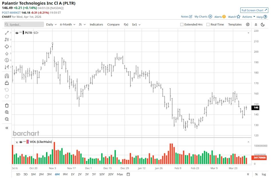 Palantir Technologies (PLTR) stock was in a steady uptrend, backed by robust growth, and touched highs of $207.52 in November 2025. However, there has been a correction of almost 30% from highs even as Palantir continues to deliver growth. The correction has been broad-based for the technology sector on concerns related to valuation coupled with the impact of significant capex on margins. At the same time, geopolitical tensions have translated into additional risks. Bye Bye, AMD! Cathie Wood Ditches 57K Advanced Micro Shares The Strait of Hormuz Crisis Isn't Ending Anytime Soon. 3 Charts I'm Watching to Determine What Comes Next. Amidst a Major Selloff, Cathie Wood Was Buying Circle Stock. Why? Stop Missing Market Moves: Get the FREE Barchart Brief – your midday dose of stock movers, trending sectors, and actionable trade ideas, delivered right to your inbox. Sign Up Now! Recently, Iran’s Islamic Revolutionary Guard Corps (IRGC) has threatened to attack U.S. technology companies operating in the Middle East. The IRCG considers Nvidia (NVDA), Apple (AAPL), Microsoft (MSFT), Alphabet (GOOG) (GOOGL), and Palantir Technologies among the 18 “legitimate targets.” While this is a risk for tech stocks, U.S. President Donald Trump believes that the military campaign in Iran is likely to end in two to three weeks. Therefore, beyond the conflict, the sideways-to-lower trend in PLTR stock seems like a good buying opportunity. Founded in 2003 and headquartered in Aventura, Florida, Palantir initially built software for the intelligence community in the United States for assistance in counterterrorism investigations and operations. The company later diversified and started working with commercial enterprises. Currently, Palantir has four principal software platforms: Gotham, Foundry, Apollo, and the Artificial Intelligence Platform (AIP). Through these platforms, the company served 954 customers as of December 2025. Further, for FY25, the company reported 54% revenue from the government segment and 46% from the commercial enterprises. For the same period, 74% of the revenue was from customers in the United States. Palantir is on a high-growth trajectory with 56% year-on-year (YoY) revenue growth in FY25 to $4.5 billion. Further, for FY25, the company’s adjusted free cash flow swelled to $2.3 billion. Amidst this growth, PLTR stock has declined by almost 21% in the last six months. It’s worth noting that the Pentagon’s defense budget for FY 2026 is pegged at $1.01 trillion. Of this, a record $13.4 billion will be directed towards artificial intelligence and autonomy. Palantir is likely to be among the key beneficiaries of this allocation. Recently, it was reported that Palantir’s Maven Smart System will be an official program of record. This is likely to ensure that Maven’s government contract size will continue to grow. Overall, the U.S. government revenue upside will be strong and support the overall growth momentum. The commercial segment outlook also seems optimistic. As of December 2025, the U.S. commercial customer count swelled to 571, which was higher by 49% on a YoY basis. This will support top-line growth in FY26 and beyond. Overall, Palantir ended FY25 with a total remaining deal value of the contracts at $11.2 billion. This was higher by 105% on a YoY basis. Besides providing clear revenue visibility, the growth in deal value is an indication of the business momentum across segments. Another point to note is that Palantir ended FY2025 with a cash buffer of $7.2 billion. This provides ample flexibility for investment in innovation across the company’s platforms. Based on 25 analysts with coverage, PLTR stock has a consensus “Moderate Buy” rating. While 15 analysts have a “Strong Buy” rating for Palantir, eight analysts have a “Hold” rating. Among the bears, one analyst each opines that the stock is a “Moderate Sell” and a “Strong Sell.” The mean price target of $201.32 represents potential upside of about 37% from current levels, while the most bullish price target of $260 suggests that PLTR could climb 78% from here. Recently, Benchmark assigned a “Hold” rating to PLTR stock with a price target of $150. According to Benchmark analyst Yi Fu Lee, Palantir should deliver annual revenue growth in the range of 60% to 70% or “potentially face market draw down.” With swelling clients and total contract value, it’s likely that growth will be robust. On the date of publication, Faisal Humayun Khan did not have (either directly or indirectly) positions in any of the securities mentioned in this article. All information and data in this article is solely for informational purposes. This article was originally published on Barchart.com