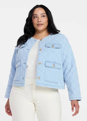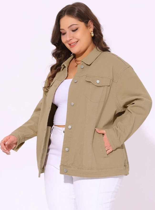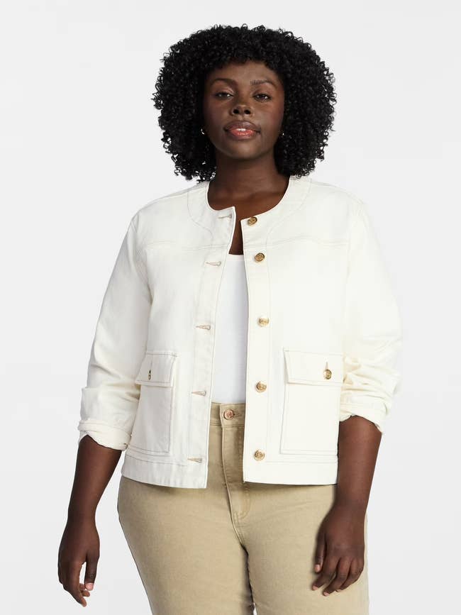 We hope you love our recommendations! While every product is independently chosen by our editors, BuzzFeed and our publishing partners may collect a share of sales or other compensation from the links on this page. You can read more about how our affiliate partnerships work in our Editorial Standards & Ethics Guide. Because it's the jacket that makes the outfit. Unless otherwise specified, all sizes in this post are listed in women's. Promising review: "Quality at a great price. Good, mid-weight denim. Cute as can be! Had to return bc it was cropped. My bad for not noticing this in the description. Return with receipt NO problem. Recommend for those liking cropped." —Carolyn Price: $39.98 (available in sizes XS–XL and two colors) Promising review: "Super cute! True to size, 5‘3“, 126 pounds. You can't beat the quality for this price. Very cute." —Sandy Price: $22.50 (available in sizes XXS–XXL) Price: $34 (available in sizes XS–4X and two colors) Promising review: "This jacket is so cute! It's such a soft, light blue denim looking jacket and lined! Medium weight and cozy but not hot. Easy to wear into Spring and even in summer evenings. I'm 5'9" and it's just below my waist so not overly cropped, just short. Love the gold buttons. I did get my regular size, and it fit great." —TRACY Price: $14.83+ (available in sizes XS–XXXL and four colors) Promising review: "Love this jacket! I got it in fleur with the matching shorts, and it is bright, exactly as pictured online! I did size down (I'm a 4–6, size small in tops), and I got an XS in this jacket. I'm so happy I did. It's still oversize, but perfectly oversize where I can scrunch the bottom and style it cute when zipped, or leave it unzipped at its full length." —DFH Price: $28 (available in sizes XS–XXXL and two colors) Promising review: "This jacket looks exactly like the picture. Oversize and so comfortable! I sized down a size so it wasn't too oversize and it fits perfectly!" —Jessie Price: $19+ (available in sizes XS–XXXL and four colors) Promising review: "I LOVE this blazer! I normally hate how stiff blazers feel and this one wasn't stiff. It looks way more expensive in person that it is. It is fully lined, and the details are very expensive-looking. This is the perfect slightly off-white color I needed in my soft summer wardrobe. I would buy more if they made it in a light periwinkle blue and a soft pink color or a beautiful shade of lilac." —Megan Price: $29.98 (available in sizes XL–XXXL and two colors) Price: $30 (available in sizes XS–XXXL and two colors) Promising review: "Excellent quality denim jacket. It's super cute and hits at the perfect place. I'm really picky about quality, and I've been on the hunt for a darker-wash denim jacket, and this checks all my boxes! Perfect for dressing up leggings and a tank top, or for layering over a dress. I'm constantly impressed with Free Assembly." —Rachel Promising review: "This denim jacket is everything I hoped for and more. The fit is absolutely perfect — tailored enough, but still comfortable with just the right amount of room to move. The sleeves hit at the ideal length, the shoulders sit exactly where they should." —Brooklyn Price: $34 (available in sizes XS, M–4X) Promising review: "I wasn't sure about this jacket, thinking it was not long enough. It turned out to be perfectly fine. This is the first jacket EVER that was the right length in the sleeves. Excellent purchase on my part." —Elyse Price: $39.99 (available in sizes 1X–4X and two colors) Promising review: "This is so pretty. The 3X fits just right. This is perfect for me because I do not like a heavy coat and never wear one, and this can be worn in winter, fall, and spring. It will keep you very, very warm. Love it, and it is longer in the back, just another to cover your backside...I have got one in every color, and they are all pretty, and the price is 15 dollars, you can't beat that." —betty Price: $19.98 (available in sizes 1X–4X and three colors) Promising review: "Love this jacket. Terra and Sky are hit-or-miss in terms of size, but this jacket is on point. My favorite jeans jacket, and I already own 3. I bought a 5X for a little more room." —Andrea Price: $38.98 (available in sizes 0X–5X and three colors) Promising review: "Love this jacket with the added little underneath top with the grouping. Great color and very comfy. Perfect for a spring day. I did size up to a large from a medium." —PJ Price: $34 (available in sizes XS–4X and four colors) Price: $28 (available in sizes XS–XL and three colors) Promising review: "Comfy and stylish. It smelled weird when I got it, but it was fine after I washed it. It's a great early spring jacket." —Tiffany Price: $23.96 (originally $38; available in sizes XS–XXL) Promising review: "Stunning! This Nubby Jacket is gorgeous, and I wished so hard for it to look good on me. I have a large, barrel chest, and I could not get it snapped across the chest. Going up a size will probably make it really big on me. But for you, get it!!! You feel the quality as soon as you get your hands on it: good weight, construction, and oh, those buttons/snap covers!!! They could be jewelry themselves. Hoping they can use this fabric in another design. It goes well with the tweed skirt." —Jenny Price: $42 (available in sizes XS–XXL and two colors) Price: $42.99 (available in sizes S–2XL and three colors) Price: $39.88 (available in sizes XS–XL and two colors) Price: $39.99 (available in sizes S–2XL and two colors) Promising review: "This hoodie is a new favorite! The fabric is thick, soft, and has good stretch and weight. I would say they run a little on the larger end, and you might be able to size down one. Definitely do not size up. I have been loving the Reebok sweats collections lately! This hoodie is a real winner in my book." —christine Price: $19.99+ (originally $25; available in sizes XS–3X and 10 colors) Promis