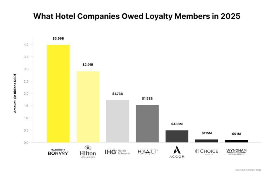 Seven of the world’s largest hotel groups collectively owed their loyalty members roughly $11.6 billion in unredeemed points at the end of last year, according to a Skift analysis of their most recent financial filings. Marriott alone owes guests nearly $4 billion in free stays and other perks. Hilton owes almost $3 billion. These loyalty “liabilities” have ballooned in recent years, driven by an explosion in co-branded credit card deals and a surge in loyalty program enrollment. Yet hotel executives don’t consider these liabilities problematic in the way traditional debt can be. One reason is that travelers keep racking up points faster than they redeem them, and they typically don’t cash in all the points they earn. At Marriott, the gap between points earned and points redeemed widened by $473 million last year. What’s happening is straightforward, even if the accounting isn’t. Let’s say a traveler taps or swipes a hotel group’s co-branded credit card at a grocery store. The card issuer, such as JPMorgan Chase or American Express, essentially pays the hotel company for the points that the cardholder just earned. If a traveler stays at a hotel, the hotel will essentially pay the hotel group a fee to support the loyalty program. In either case, cash essentially comes in the door, though the timing of that can get complicated behind the scenes. The hotel company can’t simply account for all of those loyalty redemptions right away. The “value” of the points sits on the balance sheet as a “liability,” or an IOU to the traveler. While a hotel company is waiting for travelers to burn their points, it can essentially tap into some of that deferred revenue as “a float.” IHG disclosed that its loyalty program generated $74 million in additional working capital last year, in addition to the $37 million in upfront cash from new U.S. credit card agreements. The numbers as of December 31 reveal a steep hierarchy. Marriott had the largest obligation, owing $3.99 billion to guests. Hilton ranked second at $2.91 billion. The difference is notable given that their membership counts are roughly comparable. Marriott had nearly 271 million at the end of last year. Hilton had over 243 million members. However, Marriott Bonvoy members earned 37% more points value last year than Hilton Honors members did, a gap that is proportionally much wider. One explanation is that Marriott simply offered more places to stay, with 31% more rooms than Hilton. Expect hotels to pledge their loyalty programs as collateral for debt. This securitization would mirror what airlines have already done with their much larger programs. For instance, Delta raised $9 billion in financing secured by SkyMiles during the pandemic. The hotel loyalty pool of deferred revenue, or contractually funded cash, essentially backed by reliable consumer spending patterns and major credit card issuers, is exactly the kind of asset that attracts structured-finance attention. The numbers need to grow bigger for this to happen, however, and it’s not clear how long it will take. Marriott’s loyalty IOUs to guests have grown by over 40% over a decade, in tandem with its expanding loyalty program membership, co-branded credit cards, and efforts to drive engagement. Other hotel groups have thriving programs, too. IHG owed $1.73 billion, Hyatt owed $1.53 billion, and Accor owed $488 million, as of December 31. Notably, Wyndham and Choice Hotels each carried roughly $100 million in loyalty liability. In a sense, the value of what people had earned in Marriott’s program was 20 times that of what they had earned in Wyndham and Choice’s programs combined. One explanation is that the Marriotts of the world had much larger luxury footprints than Choice and Wyndham. This dynamic hints at how much the loyalty game favors companies with many aspirational, luxury properties, inspiring people to hoard their points for dream-trip redemptions. Marriott has over 500 luxury hotels and resorts, while Wyndham and Choice only have dozens. Another large hotel group that lacks many luxury hotels is China’s H World. It hasn’t yet released comparable figures. But for context, as of December 2024, its loyalty members earned about $49 million (338 million renminbi) in value in the H Rewards loyalty program. Not every point will ever be redeemed. Some members go inactive. Some rack up balances they’ll never touch. The industry calls this “breakage,” and estimating it is one of the most consequential judgment calls in hotel accounting. When points go unredeemed, the hotel company can recognize deferred revenue without providing a free night. “Cash” came in from the credit card partner, but no one has stayed at the hotel yet. In a sense, that’s pure margin in the near term. But breakage is a double-edged sword. A member who never redeems their points is a member who’s disengaging by not booking paid stays with your brand instead of your rival’s, or not swiping your co-branded card and generating fees. High breakage can slowly starve your flywheel. In other words, when a guest earns points, the hotel group gets the “cash” value in the loyalty program. What’s at issue is when that value shows up on the P&L. Marriott estimated that a single percentage-point change in its breakage assumptions in 2025 would shift its loyalty liability by roughly $50 million. Other hotel groups disclosed similar dynamics. These estimates rely on actuarial models that outsiders can’t fully audit. Some experts believe the incentives tend to cut one way, since higher breakage flatters current earnings. Get breaking travel news and exclusive hotel, airline, and tourism research and insights at Skift.com.
