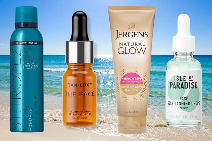 We hope you love our recommendations! While every product is independently chosen by our editors, BuzzFeed and our publishing partners may collect a share of sales or other compensation from the links on this page. You can read more about how our affiliate partnerships work in our Editorial Standards & Ethics Guide. Glow drops, bronzing lotions and body mousses so you can skip the harmful tanning beds and UV rays. If you need a refresher, however, Dr. Brendan Camp of MDCS Dermatology in New York City recently reminded us that UV radiation from the sun and artificial sources like tanning beds and sun lamps is a known carcinogen responsible for causing skin cancer as well as premature skin aging. (This is also the case for individuals with naturally higher melanin production in their skin.) Fortunately, the beauty industry has afforded glowy-skin seekers tons of safe and UV-free alternatives that offer sun-kissed results without having to log hours in the sun or on a tanning bed. Celebrity esthetician and Austin, Texas-based medical spa owner Kristin Gunn said that “[s]elf tanners come in a variety of forms [like] creams, mists, lotions, gels and even milks,” which means there’s something to meet everyone’s needs and preferences. According to board-certified dermatologist and skin care brand founder Dr. Azadeh Shirazi, most self-tanners work by using the color additive DHA, a type of sugar that interacts with the amino acids in the skin’s surface layer to produce color. “Self tanners are not only safe and convenient, but they also have the advantage of giving you almost immediate results with a color that’s customizable,” Shirazi said. Gunn prefers mists for the body as they seem to go on evenly and have less room for error while tanning drops are great for the face, especially mixed in with moisturizers. Shirazi likes gel-based formulas for those with oily or acne-prone skin types. Gunn, Camp and Shirazi have revealed to us some of their favorite at-home self-tanners, the benefits of their formulations and who they might be best suited for. See them for yourself in the list ahead before you venture outdoors without sunscreen or even think about a tanning bed. Board-certified dermatologist Dr. Azadeh Shirazi suggested this drugstore favorite gradual tanning lotion particularly for self-tanning beginners since it's so easy to use and wields fool-proof results. Loved for its low-maintenance application, Jergens Natural Glow also offers skin-toning benefits thanks to the inclusion of collagen and elastin and, with daily use, the nourishing and hydrating formula slowly deepens your skin’s natural tone. Available in two shades, the lotion features an infusion of antioxidants that can help to protect skin from environmental stressors that are responsible for premature aging. Recommended by board-certified dermatologist Dr. Brendan Camp are these self-tanning drops by Isle of Paradise, which Camp said contain vitamin C for antioxidant protection. And since they are a concentrate, they must be added to your favorite moisturizers or serums in order to create a customized tan that’s both natural-looking, streak-free and will fully develop in four to six hours. Available in three different shades, these glow drops are developed to work with your specific skin tone while helping to reverse dullness and even tone. Omega-rich ingredients like chia seeds and avocado oil also help condition skin and support barrier function. Both Camp and Shirazi like this well-known bronzing mousse by the trusted at-home tanning brand, St. Tropez. Lightweight and natural-looking, Camp said he likes that it's formulated with moisturizing jojoba and antioxidant-rich vitamin E for an added dose of skin protection. Good for uneven skin texture, the foamy tanner promises to be easy to apply, so it's great for sunless tanning newbies, and it dries down to an imperceptible, streak-free finish in as little as one hour and can last up to 10 days per application, with an even fade. Another plus, is that the brand promises a transfer-free performance so you don't have to worry about staining your white bed sheets or clothes. It's available in one shade, and based on reviews is suitable for fair to deep skin tones. Get it from Sephora for $34+ (available in two sizes). "My favorite tanning drops for the face are [these] by Typology," said celebrity esthetician and medical spa owner Kristin Gunn. "They provide a sun-kissed, non-orange look that will have people asking if you’ve been to the beach" Formulated to impart a natural-looking, gradual and customizable tan, this plant-based serum is made with carob pulp, an extract that not only aids in making the skin appear more tan, but can potentially stimulate the synthesis of collagen. The progressive and nourishing drops can be used alone or mixed in with your favorite moisturizer for a tailored application process and end result. According to the brand, the number of drops applied and how often will allow you to modulate the intensity of the tan. Get it from Typology for $34.50+ (available in two sizes). "[These] are a great option for the face especially if you are acne-prone," said Shirazi. "You can mix it with your moisturizer or serum and apply it two to three times a week to start [and] the more drops you add, the darker the shade so it’s customizable." Similar to other tanning drops on this list, the St. Moriz Advanced face drops are meant to create a gradual tan that's radiant and natural-looking and promises to be made using clean ingredients that are kind to sensitive skin. Get it from Amazon for $11.91+ (available in two styles). Another St. Tropez option comes recommended by Gunn, who called this bronzing mist "the best kept secret out there." The fast-acting formula is dispersed in a 360-degree aerosolized spray that can be applied even when the can is upside down to make it easier to reach areas like the backs of your legs on your own. Gunn likes t