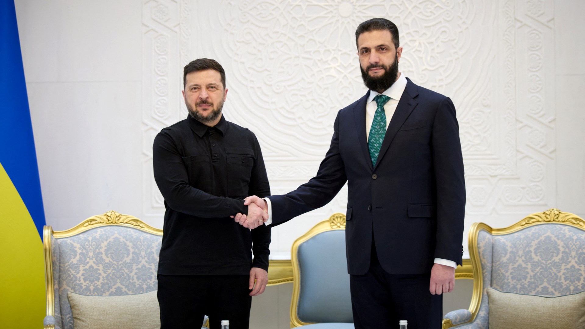 During a trip to Damascus, Ukrainian President Volodymyr Zelenskyy said the two countries agreed to work together to provide ‘more security and opportunities for development for our societies’. Save Share The leaders of Ukraine and Syria have pledged greater security cooperation, President Volodymyr Zelenskyy said, as Kyiv offers its military expertise to governments across the Middle East region amid the US-Israeli war on Iran. Zelenskyy held talks with Syrian President Ahmed al-Sharaa in Damascus on Sunday, in his first trip to the Syrian capital since former leader Bashar al-Assad was ousted in 2024. Zelenskyy wrote on Telegram that the leaders agreed to work together to provide “more security and opportunities for development for our societies”. “There is a great interest in exchanging military and security experience,” he said. Since the war began on February 28, Iran and its allied groups have attacked US and Israeli targets, as well as targets in Gulf countries, using a range of missiles and drones. Ukraine, which has developed expertise in countering drone attacks in its more than four-year war with Russia, has offered its country’s expertise during Zelenskyy’s visits to countries in the region, and has sent teams to Qatar, Saudi Arabia and the United Arab Emirates. During his visit to the Gulf states last week, Zelenskyy signed long-term military cooperation deals with Saudi Arabia and Qatar. Syria is not known to have any air defences capable of dealing with Iranian drones or missiles. Zelenskyy also told al-Sharaa that Kyiv was a reliable grain supplier and said the two leaders “discussed joint opportunities to strengthen food security across the region”, According to Turkiye’s Foreign Ministry on X, the country’s foreign minister, Hakan Fidan, also met Zelenskyy in Damascus on Sunday, as well as his Syrian counterpart, Asaad al-Shaibani and Ukraine’s Andrii Sybiha. The meeting with foreign ministers came a day after Zelenskyy visited Turkiye, met with President Recep Tayyip Erdogan, agreed on “new steps” in security cooperation, and discussed joint gas infrastructure projects and gasfield developments.