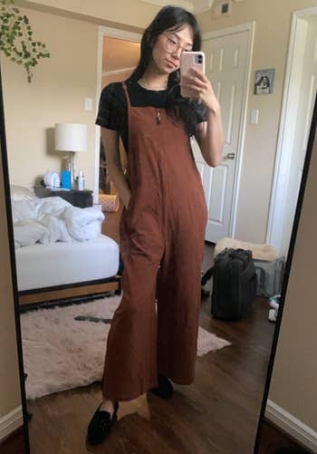 Promising review: "It fits me perfectly! It is also EXTREMELY comfortable and soft. The length is perfect, and the two pockets are great! I highly recommend this jumpsuit!! In fact, I NEVER leave reviews, but I logged into my account to order another pair in a different color, and the review and ratings page popped up. If you’re on the fence about buying this item, don’t be!! I LIVE in mine! I can lounge around the house or dress it up. ✨💕🔥" —Amazon Customer