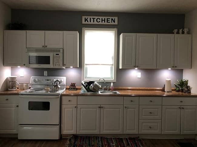 Promising review: "These are super easy to install and use. They’re bright enough that you can see what you’re doing, but dim enough for the kitchen to still feel 'cozy.' With the overhead light on, these make a HUGE difference as they light up the parts of the counters that sit in the shadow of the upper cabinets. I’m obsessed with them — perfect for late-night trips to the kitchen or to keep a 'night-light' on throughout the night. They click into place so they won’t fall off the upper cabinet. Also, like that they’re not motion sensors, so they won’t waste battery, and they don’t take up an outlet. They’re exactly what we needed! Highly recommend" —emgs