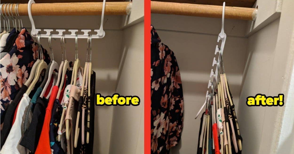 We hope you love our recommendations! While every product is independently chosen by our editors, BuzzFeed and our publishing partners may collect a share of sales or other compensation from the links on this page. You can read more about how our affiliate partnerships work in our Editorial Standards & Ethics Guide. Let’s find all those missed storage ops before you start decluttering. Promising review: "I bought this product in a two-pack for my T-shirts because I hate folding and putting laundry away, and thought it would be a more convenient way for me to keep my clothes organized, and Wow! When I saw how durable and well-made they were, and how much space they saved, and how easy they were to use, I bought more! They were also a great value for the money, and I was able to just walk into my closet and see all my clothes, so they were all visible as soon as I opened my closet, no more searching through drawers. The next two packs I bought, I even used to hang my hoodies; these things are super durable and sturdy. I highly recommend these little darlings for anyone trying to get organized." —Sissy Get a two-pack from Amazon for $12.99+ (available in three colors as well as individually and in packs of four). Promising review: "It has doubled my closet space in my apartment where I can’t make any damage in terms of adding another permanent shelf — so this has been a perfect solution. It was easy to assemble and is sturdy. I’ve had it for a couple of weeks now with no issue. Your closet has to be pretty high for this to work or else your shirts above are going to get caught on the hangers below and for my case, some of my shirts are dragging on the floor — just keep this in mind when you’re thinking about purchasing." —Alex Promising review: "Great product for a great price. Very sturdy, but lightweight and small — under my bathroom sink is *very* small, and the metal frame is thin enough that it doesn't take up much space, and of course it allows me to utilize the empty vertical space instead of shoving things all the way to the back wall. I might rearrange the shelves, but it's just held with screws on each end so that's easy enough to do-comes with two supports for two shelves, but you can choose from four heights/positions. 👍🏻 Might need to order a second for under the kitchen sink..." —Jennifer Mowry FYI, it installs like a regular outlet cover. Of course except with the wonderful shelf. Can also be installed so the shelf is below the outlet. Promising review: "I absolutely love this thing! I have much less clutter on my sink thanks to this. If there's anyone not sure if it will fit due to an object, all you need is 1.25 inches of space between the edge of your existing outlet plate and the piece of furniture. I have a GFCI with a standard wall plate." —Amazon Customer Get it from Amazon for $13.99+ (available in four colors). Promising review: "The expandable shelves I got doubled the area so usefully in my tiny kitchen cabinets! Love them...and will enjoy them for years to come!" —Diana G-B Get it from Amazon for $15.87 (available in bronze and silver). Promising review: "I will spare you the horrific 'before' picture of the complete nightmare that was my closet floor. Just imagine a dusty mess with shoes thrown all over each other in a sad attempt at giving some appearance of order, and you will have a good idea of why buying this shoe organizer was one of the best ideas I've had this year. The floor now looks so neat and tidy I can't believe my eyes every time I open my closet doors." —Veronica, just an average reader, you know? "I really like these for my sports shoes. Doubles my space, and your shoes can air out! Perfect!" —Lewlu Get a set of 10 from Amazon for $29.99+ (also available in packs of 20 and 40). Yep, you're looking at my shower! I upgraded from a corner tension rod caddy and never want to go back. The mesh pockets drain water so your liner won't get all icky. And they make it easy to tell the difference between the minimalist packaging for your face wash and shave cream when it's way too early in the morning. Read my full review of Maytex Pockets Shower Curtain Liner (#2) to learn more about why I'm in love with an object that can't love me back. Promising review: "I love this shower curtain for my small bathroom. It literally doubled my storage space. I use it facing outwards and with an inner shower curtain, which makes cleaning easier. Really, such a useful product for small bathrooms." —Emk Promising review: "Using this in our pantry to hold our many tumblers! Holds everything perfectly and will be getting another for all our plastic ones at some point!" —Megan Walters Get it from Amazon for $14.99 (available in two sizes and four colors). Homelux Theory is a small biz specializing in home solutions. Promising review: "Very pleased with product quality. Fits perfectly over the linen closet door, which almost doubles the storage. Recommended!" —Cindy Reidland Get it from Amazon for $26.99 (available in six colors). Promising review: "This shelf doubled my storage space and makes it easy to reach everything without digging through the whole cabinet." —JBird Get it from Amazon for $25.99 (available in 10 colors). Check out how they work on TikTok! And PS: Wonder Hanger is a small biz! Promising review: "I wish I had taken the time to take a before and after pic because I have so much more room in there now than I did before. I found the cutest tops in there that I had completely forgotten about because my clothes were crammed in the closet so tightly. Most of the time, I felt like I had nothing to wear, LOL, and now, I know exactly what I have, and it's even organized by sleeve length and color. I would definitely buy again and actually plan to buy more for my husband and children to use as well." —Mariko Lamb "I bought one set and loved it so much that I bought another set. My closet looks more organized, and the space