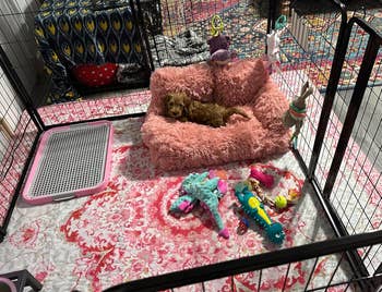 Promising review: "This item was the perfect choice for my bunnies’ pen. The design is gorgeous. I wanted something light and easy to maneuver under their heavier acrylic pen, and this one fits the bill perfectly. Washed and dried, and kept its shape. Its leak-proof and waterproof design helps with pet mess and water bowl spillage, ensuring a nice dry space for bunny flops. Two in a pack allows me to switch out when washing, so my buns are always protected. I cannot say enough about this brand and the value overall will have me coming back as needed when I expand their pen." —Sam Cam