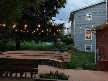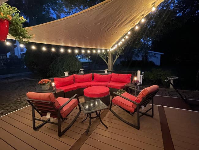 Promising review: "I’ve been meaning to get something like this for years. Our patio has no cover at all, especially in early spring when the leaves aren’t back. The sun is unbearable at times. We bought the install kit and used it to attach the two sides to the house and used a ratchet strap to attach the other end to a tree on the other side of the patio. So far it’s holding up well. We added lights which makes it super cozy at night and completely changes the feel of our patio." —Kaitlyn Tugend