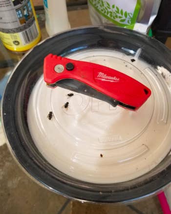 Promising review: "Got an outdoor can, the kind the mechanical arm on the garbage truck picks up and tips over, with the lid opening by gravity. Placed this on the inside of the lid, near the hinge to lessen the chances of it being scraped off during emptying and no flies/maggots! No apparent odor, just seems to put a big hurt on the fly party that used to be my trash can (litter box contents, remnants of meat, etc)." —Michael E. Bradley