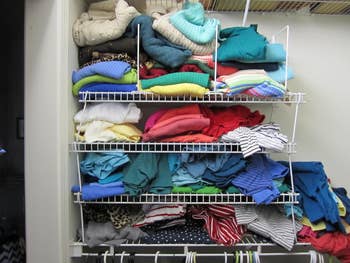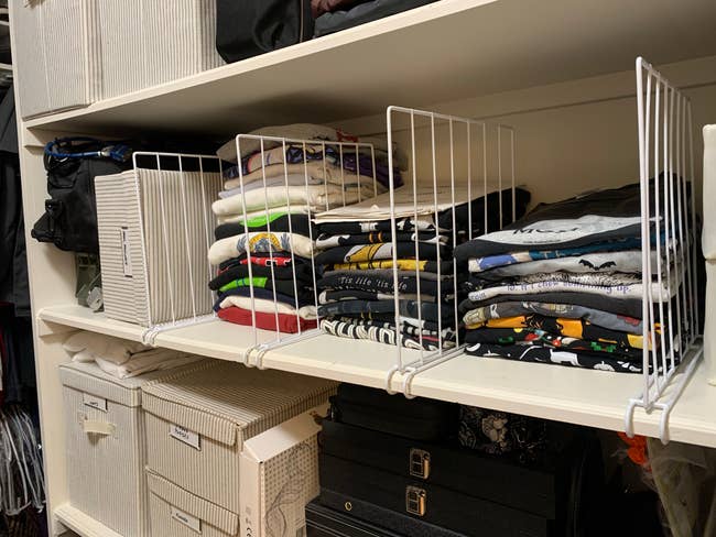 We hope you love our recommendations! While every product is independently chosen by our editors, BuzzFeed and our publishing partners may collect a share of sales or other compensation from the links on this page. You can read more about how our affiliate partnerships work in our Editorial Standards & Ethics Guide. If your current method of organization could best be described as “big ol’ pile,” we’re here to help. Promising review: "Saves so much space in my closet! Very sturdy and easy to use. Rotates for easier access. Clothes do not slide off of the hooks either. Looks very clean and aesthetic as well. Going to purchase more for my kids room." —Heather Get it from Amazon for $9.99+ (available in seven colors and one, two or four packs). Promising review: "Love these dividers. Pretty sturdy and clips right on the shelf. They don't move around or collapse. I have open shelves in my closet, and they are perfect for separating my purses so that I can easily and make it easy to keep them neat and accessible without pulling three or four down every time I reach for one purse." —Grammy Ray Get it from Amazon for $37.99+ (available with or without hooks, for wood or wire shelves, and in sets of four, eight, 10, and 20). Promising review: "These storage baskets are the perfect answer to organizing different open areas of my home. They are super easy to set up and very attractive. I put them in the walk-in closet and in the laundry room. The fact that they slide out makes it easy to access what you need. I highly recommend them!" —Amazon Customer Get it from Amazon for $35.99+ (available in four colors and five or eight packs). Promising review: "Super universal towel hook. I personally used it in the kitchen, laundry room, closet, and for a hanging flower pot! I wanted the bright white color, and it’s exactly what I was hoping for. Easy to 'install.' No tools or hardware necessary! Just peel and stick on firmly. Since then, I have not had the hook shift or move at all—including under the weight of a hanging basket. Great quality and would definitely, 1) Recommend to others, and 2) Buy again!" —Ashley Get it from Amazon for $9.99 (available in five finishes and two, four, and six packs). Promising review: "This is my second purchase of a hat rack. My sons seem to keep coming home with more caps, and instead of them lying around everywhere and having to look for them when they need them, they now know where to find them. It also helps keep us out of the way of our new puppy, who is chewing on everything right now. Easy install. Happy with purchase." —KirkMP Get it from Amazon for $7.59+ (available in seven colors and in two-, four-, six-, and eight-pack sizes). Promising review: "This works well for me. I've doubled my space; it protects the shoes because of how you place them on the product, and you can easily see your shoes. I'm going to buy some more." —Susan S Get it from Amazon for $24.99+ (available in packs of 10, 20, and 40). Promising review: "Cutest little boxes ever. If you tend to collect random things and need some way to organize them, this is the perfect product and size. I keep one on my nightstand for my hair clips/ties / etc. that I always happen to forget to take out before I get in bed. Now, I just roll over and throw it in there and don’t have to worry about stepping on them in the morning when I’m crawling out of bed. I used another 2 on my desk to organize post-its and chargers, and so far, I haven’t had any issues with them not holding their own. They’re super light (I stuck one to the wall in my bathroom) and overall are the perfect addition for anyone’s home or office if they’re looking to organize the little stuff!" —Hannah Wulczyn Get it from Amazon for $9.99+ (available in three sizes, eight colors, and packs of two and four). Promising reviews: "These were great to put shoes in for travel, to put in the suitcase so my clothes don't get dirty. They fit my guy's size 13 shoes well, and could likely accommodate another couple of sizes up if needed. They are also useful for putting dirty laundry in, so other clothes in the suitcase don't get stinky or dirty. They are more rugged than a grocery sack, which was the default in earlier travel. I like these much better. They are more pliable and sturdy. The drawstring ensures no escapes from dirty shoes or laundry." —Sandi "Works well for shoes, sandals, high heels, and other items you want to store. For example, the caps I purchased fit nicely, and I can hang them up. Will keep dust off them for winter storage." —PD Get it from Amazon for $6.99+ (available in four colors and five or 10-packs). Promising review: "These large storage bags worked great to help organize my linen closet. I was able to put throws, blankets, spreads, etc. I like that I can see-through the window whether to open that particular bag or not. Each has handles on the side for transportability, and the bags are durable with a zippered lid closure. There is no smell of the plastic/fabric bags. Great looking in my closet and it fits on my shelves perfectly." —S Kennedy Get it from Amazon for $19.99+ (available in sic colors and packs of two, three, four, six, eight, and 10). Promising reviews: "I am so glad I ordered an extra pack of these. My goal for January was to organize the basement. I have TONS of plastic bins, and whenever I need something, I have to open each one to find it. I took a few hours the first weekend cleaning out and organizing everything and the bins. I took pictures of the contents of each bin, put one of these stickers on each bin, then associated the pics with the sticker’s QR code, and voila, done. IF YOU LIKE TO BE ORGANIZED, GET THESE STICKERS!" —Fred Labro "Super excited to have all the clothes my oldest has grown out of easily organized for when my youngest is ready to wear them. Also, super easy to use and helped me organize my messy attic." —Katie Heller Get it from Amazon 