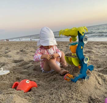 We hope you love our recommendations! While every product is independently chosen by our editors, BuzzFeed and our publishing partners may collect a share of sales or other compensation from the links on this page. You can read more about how our affiliate partnerships work in our Editorial Standards & Ethics Guide. “My 4-month-old loves it and leaves it on, so it must be comfortable.” — a very pleased parent Hello, fellow wranglers of tiny humans! I'm Heather, BuzzFeed editor and mom of two kiddos under the age of 4. I've been doing this "shopping for baby hats that'll protect my kid from the sun" game for a handful of years now, so I'm here to do the heavy lifting for you (and lots of other parenting problem-solving areas!) From a tried-and-true Carhartt baseball hat and a splurge-worthy safari-styled option from Patagonia to an adorable wide-brim sun hat from RuffleButts, you're sure to find the perfect thing to spare their noggin while they have a blast playing outside all summer. You can't go wrong with a tried-and-true classic like Carhartt! My son (pictured above, left) has had one since he was a baby and he (as of this writing) is 4 now! We've continued to replace them as he's outgrown them — they're a staple in his wardrobe! They protect his head and eyes from the sun, and he's happy to keep it on his head. In the fall and winter, he wears a Carhartt beanie, so his head is pretty much covered by this brand at all times — literally. Need I say more? Promising review: "Great comfort and value for money! The fit is perfect for my child, and the material's softness makes it comfortable to wear all day. It stays in place without being too tight, and the quality feels durable. Definitely a great buy!" —Nakia Get it from Amazon for $11.99+ (available in infant and youth sizing and five styles). This brilliant little sun hat (with built-in UPF 50+ protection) has extra coverage around the back to shield your baby's tiny ears and precious neck from the harsh sun. It also has an elastic band that adjusts the hat as their head grows, so they can wear it for years to come (something parents, like myself, love to hear!). The chin strap also makes it harder for them to pull it off, another big parenting win, but if they *do* manage to toss it (and lose it), at least the price is so good you won't feel too bad about having to order another one! Promising review: "Loved this hat! Definitely what I was looking for. It’s very soft, fits perfectly, and doesn’t make her head sweat! I recommend you mommas buy this for your baby!!" —Gabby Baeza Get it from Amazon for $12.59+ (available in sizes 0–24M and 2T–4T, in seven colors). RuffleButts is a small business! My daughter was gifted one of these hats (and very cute swimsuits) when she was born, and it was absolutely darling. However, in addition to being adorable, it really did a great job of protecting her head from the sun while hanging in our yard. It has built-in UPF 50+ and is made from a very soft fabric that rolls easily for packing. It also has adjustable tie straps to keep it securely on your little one's precious little head. Not to mention it comes in a bunch of fun colors! Promising review: "This hat is just adorable. It seems really comfortable because my daughter actually likes to wear it. It definitely helps to keep the sun out of her eyes and off her neck. The string to keep it tied doesn't bother her at all. I also love that it's swimsuit material because she can wear it with her swimsuit." —Grant Aucoin Get it from Amazon for $19.99 (available in sizes 0–24M, 2T–5T, 6Y–10Y, and 22 colors). This hat is so cute! It comes from a small business, Zelda and Matilda, and can float! It also has UPF 50+ protection and is made from a lightweight, machine-washable, stain-resistant material. It also has an adjustable drawcord for the perfect fit *and* a soft chin strap (with a safety release!!!) to hopefully prevent this lovely hat from being lost at sea. Promising review: "This adorable and comfy hat has given us a lot of use in the unforgiving Florida sun. My kid has been wearing it since she was 6 months old, and she is now 21 months old. There is plenty of adjustment left to continue wearing; however, the vibrant tie-dye pattern has definitely faded, so I plan to replace it soon. We get compliments on this hat everywhere we go!" —Bella Goth Get it from Amazon for $16.99 (available in sizes 0–24M and 2T–12Y, and in 7 styles). Green Sprouts is a small business! Can you believe this baby sun hat has over 3K 5-star reviews?! And for good reason! It's affordable, adjustable to grow with your kiddo, has a breathable liner to keep them cool and comfortable, and is machine-washable. It has a full-coverage flap to block their sensitive skin from UV rays while they play in the sun and sand *and* can be folded up easily and stashed in your diaper bag. Promising review: "Best summer hat I have used for a baby! My 4-month-old loves it and leaves it on, so it must be comfortable. It's a soft, breathable material, very lightweight, and perfect for summer. Good for the pool; it dries quickly and well. Love that it keeps the sun out of her eyes and off her neck. The adjustable strap ensures a perfect fit every time. Would highly recommend!" —Jaime Get it from Amazon for $12.99+ (available in sizes 0–18M, 2T–4T and four colors). Funky Junque is a small business! This beauty has a basketweave designed for air circulation and an opening for your little one's signature ponytail — no need to wrangle them to sit still *again* to try and tame their wild mane after splashing in ocean waves. BuzzFeed Home and Garden Editor Sally Elshorafa has this hat for her kiddo! She said, "My daughter's hair is in a ponytail or pigtails every single day, so wearing traditional hats has been challenging. When I found out about these ponytail hats, I jumped at the opportunity, and I am so relieved that they fit well and that my daughter