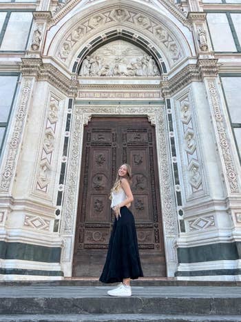 Promising review: "This is the review you need, I promise. Let me start by saying that once booking a 5-week study abroad trip to Italy, my search began for the perfect tennis shoe. These were the top-recommended shoes everywhere, so I took the leap. I wore these shoes almost every single day in Italy, averaging about 20,000+ steps per day without even breaking these shoes in, and let me tell you, THEY DID NOT DISAPPOINT. These shoes did not hurt my feet the ENTIRE trip; they were so comfortable and had amazing support. How easily they dirty was so irrelevant to me after how amazing they held up otherwise and how comfortable they were for me. Because of this, I would 100000% recommend these shoes to anyone who is traveling and walking a lot and needs a cute yet comfy shoe, or even as an everyday shoe. They are not super hard to clean, but not necessarily easy either, so just keep that in mind. The shoes held up amazingly and went with all my outfits. I am so thankful I got them for my trip!" —Hannah Grella