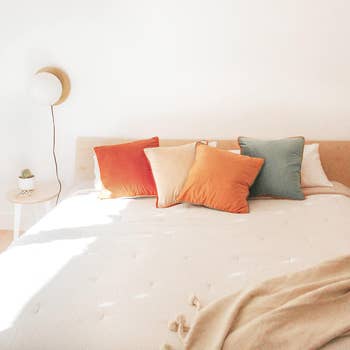 Promising review: "These are gorgeous, soft, and well-made. I chose the orange and teal combination. Perfect! No loose strings at all, which is rare in itself when you order textiles. I want to get some more. Just luscious!... They are a different color on the other side, which adds more interesting contrast. I definitely recommend these. They can work in a casual or more formal setting. The colors are unique as well. I suggest getting inserts the same size if you want a soft pillow, and size up the insert if you want a firmer, puffier look." —AlphabetSoup