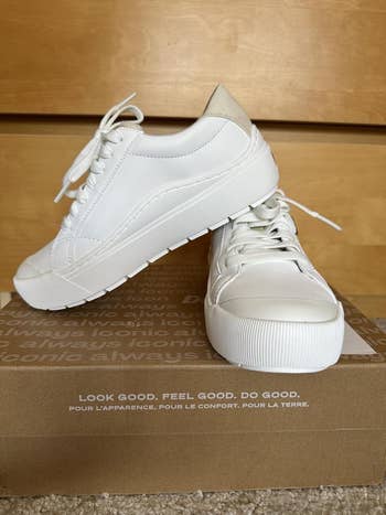 "As a 29-year-old, I was influenced to buy these from an Instagram influencer... I wanted white sneakers that would go with anything for a trip to Savannah, GA. They are worth the hype. Comfortable walking 10K steps a day...Since they pair well with everything, I was able to lighten my suitcase by a few pounds only packing these and a pair of sandals. The material makes them easy to wile down with a magic eraser." —Alissa H.