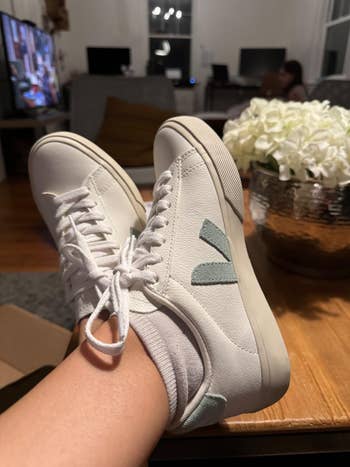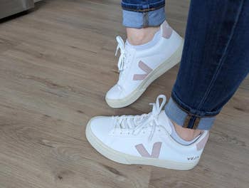 Promising review: "Most expensive shoe I own. That said, I treated myself to a pair of Veja shoes because I've been killing it lately, and I'm glad I did! I have very sensitive Achilles and upper feet. I will blister with minimal friction and stiffness. These kicks WILL NOT have that issue. They are structured, yes, but not tight. Don't slip, so no extra rubbing and friction. Plus, in a nice boujee move that I'm here for, they padded the tongue on the inside, so it's smooth on the outside but nice and cushy on the inside. I will be wearing these on repeat, and you should too." —Stephanie Athey