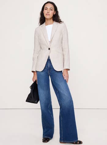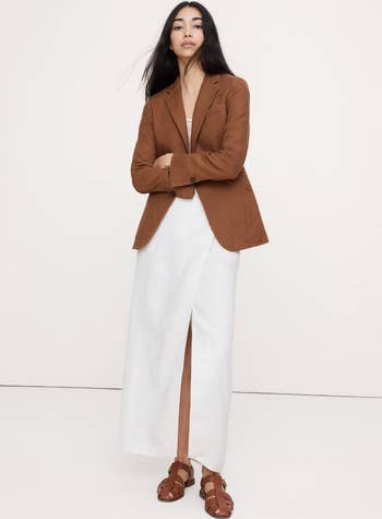 Promising review: "This is just the perfect linen blazer. Well-constructed. Just beautiful. I know I will get tons of use out of this. Can dress it down with jeans or dress it up for work. Also great for travel." —Allison