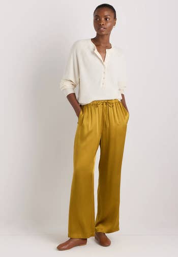 Promising review: "These silk pants are the perfect fit. They can easily be dressed up or down and are easy to launder and care for. I matched them with a cashmere tee in the same shade for a monochromatic look. I will definitely buy in another color as well." —Chelsea