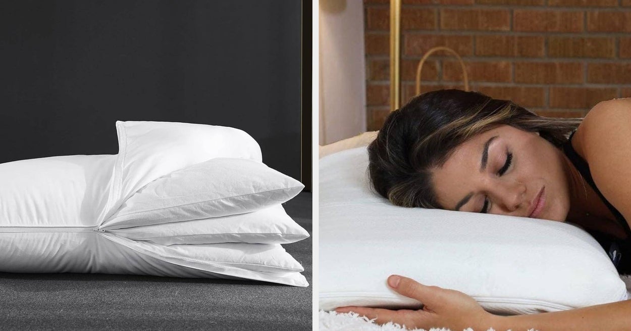 We hope you love our recommendations! While every product is independently chosen by our editors, BuzzFeed and our publishing partners may collect a share of sales or other compensation from the links on this page. You can read more about how our affiliate partnerships work in our Editorial Standards & Ethics Guide. Because you probably aren’t using the right kind of pillow right now. Popular misperception of stomach sleeping may help explain why targeted products for face-down sleepers can sometimes feel so scarce, overshadowed by offerings for side and back sleepers — despite the position’s relative popularity. For example, the archetypical commercial pillow is thick and fluffy, mirroring the kind of cloud-like cushion depicted in storybooks. Yet this is simply not the kind of pillow stomach sleepers should be using. “The best pillow for stomach sleeping should be soft and fairly thin to maintain proper spinal alignment ... You want to avoid a pillow that is too thick and causes strain,” explained Dr. Fariha Abbasi-Feinberg. Abbasi-Feinberg is a sleep medicine physician and neurologist who serves as a board member for the American Academy of Sleep Medicine and the Medical Director of Sleep Medicine at Florida-based Millennium Physician Group. Thin pillows are beneficial for stomach sleeping since they help promote neutral spine alignment — especially important since improper spinal alignment can cause issues like neck and back strain. The experts consulted for this story do not necessarily endorse the products ahead unless otherwise noted. In addition to emphasizing the importance of thin, soft pillows, Abbasi-Feinberg added that "flexible materials would also be helpful to provide gentle support." Based on this recommendation, we think the Bluewave extra-slim pillow is another great option for stomach sleepers. It's available in four low-loft heights, with its lowest version an impressively slim 1.75 inches. The brand promises it's the thinnest pillow on the market, and our research backs the claim up. That bodes well for stomach sleepers, who are best suited to flatter pillows yet can still benefit from a slightly elevated profile to support breathing. The Bluewave model is also made with cooling gel memory foam for soft support that'll help wick away sweat and heat. Get it from Amazon for $39.95+ (available in 10 styles). "Stomach sleepers do best with lower loft pillows because they won’t strain the neck during sleep," explained Wu. "They need to look for pillows that help promote neutral spine alignment." Low loft pillows are typically three inches or less in thickness. Based on Wu's advice, we selected the Blissbury stomach sleeping pillow. One of the rare options designed specifically for belly sleepers, it's 2.6 inches thick, so it won't strain your neck, and is made with ventilated memory foam to provide gentle yet slim support. Plus, hot sleepers can grab it in a cooling version with heat-dissipating, Oeko-Tex certified fabric and gel-infused memory foam. Get them from Amazon: the standard version for $39.99+ (available in four sizes and three colors) and the cooling version for $43.99+ (available in four sizes and three colors). "Using a full body pillow can make it easier to sleep on [the] stomach [or] side and provide some extra support to relieve pressure on the lower back," wrote Abbasi-Feinberg. Based on Abbasi-Feinberg's advice, we selected this popular full-body pillow. It's beloved, with over 5,000 5-star ratings, and comes with either a velvet or cooling cover. The pillow is uniquely shaped to combine two shapes and provide flexible support. Get it from Amazon for $28.49+ (available in two sizes, two cover styles, and 13 colors). For folks who appreciate a little more versatility, we think this adjustable Three Goose pillow is a solid choice. It includes three inserts filled completely with goose feathers that you can add or remove depending on how much pillow thickness you need on a given night. That makes it ideal for switching between side, stomach and back sleeping. The trio of inner pillows are encased within a soft, polyester fiber-filled outer pillowcase. You can grab it in two sizes, several styles and in packs of one or two. We think this floppy body pillow from Buffy is another great option for stomach sleepers. It's designed to provide full body support while being flexible enough to literally tie into a knot, so stomach sleepers can adjust it to exactly their preference. Each pillow recycles about 55 plastic bottles, and it comes with a soft eucalyptus lyocell cover that's designed to get softer with each wash. Get it from Buffy for $87.20 (originally $109). "A small pillow under the hips ... can also help align the spine" while stomach sleeping, noted Abbasi-Feinberg. (Side sleepers can also try using a small pillow in between the knees.) Based on Abbasi-Feinberg's suggestion, we chose this lumbar support memory foam pillow, which measures just 5.5 centimeters high. It's designed to promote proper spine alignment during sleep when propped under the waist, and although popular with back sleepers (as shown in the photos) reviewers call it great for stomach sleeping. Promising review: "I have been using this pillow since the day it was delivered. I suffer from lower back pain and sciatica. This pillow helps to alleviate some of the pressure off of my lowered back. It’s comfortable. I use it to sleep on my back, side, and stomach. Sometimes I place it under my hips to relieve pressure. When I travel, I pack lighter so that I can take my pillow. It was the best money I’ve spent that provided an immediate result." —Jadon Get it from Amazon for $19.49+ (available in seven colors). While you may have heard the benefits of side and back sleeping being touted, “The best sleep position really is a personal preference,” Abbasi-Feinberg noted. That’s because none of us are truly wedded to a given sleeping position, even if we usually start 