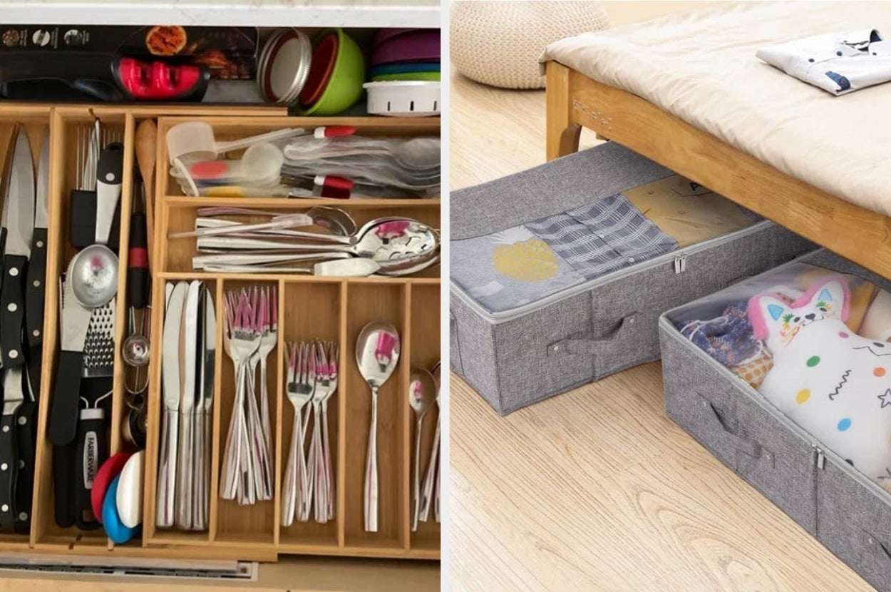 We hope you love our recommendations! While every product is independently chosen by our editors, BuzzFeed and our publishing partners may collect a share of sales or other compensation from the links on this page. You can read more about how our affiliate partnerships work in our Editorial Standards & Ethics Guide. Chaos is only chaos if it doesn’t have an organized system. Promising review: "Great size for a living room, it fits a lot of stuff inside. Easy to install and very pretty! Great quality." —Anonymous Price: $83.99+ (available in five colors) Promising review: "Perfect for my needs! Finally getting rid of a 2 drawer metal filing cabinet and wanted something to coordinate with my desk." —Robin Promising review: “Love these. Perfect size for individual footstool or an extra seat. Bought three for my living room — loved the look and functionality so much ordered another for our smaller sitting room.” —Danielle Price: $52.99+ (originally $109.99; available in six colors) Promising review: "Just what was needed to finish off my daughter’s bedroom! Lots of room for her books and games. Very sturdy." —Lori Price: $111.99+ (available in 10 colors) Promising review: "Love how my items are more organized and neatly and able to pull them out with the handle opening. Must have in your home for those of us who love to be organized." —Evelyn Promising review: "This basket was such a great purchase! It is large, substantial in weight and beautifully designed. I couldn't be more please with the quality and price. I appreciate the free shipping and fast delivery." —Mary Promising review: "Fits perfectly in kitchen drawers! The organizer holds my longest knives with room for the shorter ones, all the silverware and has room for the odds and ends we use! We can find what we need fast and easy with no moving everything around to find it. Yay!" —Joanne Price: $24.33+ (originally $33.99; available in three colors) Promising review: "This is perfect for use in my shower. We have it on a bench where water does not directly hit it. It holds a ton of product, which I definitely have. Very pleased with this shelf!" —Michele Promising review: "This is great for a kitchen with little storage/counter space. It was a little bit difficult to put together but worth it." —Meghan Price: $129.99+ (originally $156.99+, available in two colors) Promising review: "Is very big and spacious. I would love this in any color. It is very high-quality I really like it. It holds a lot of clothes and it seems very sturdy to hold all my shirts, jacket, sweaters, and almost 35 pairs of pants is very pretty and fits just right and size room." —Alesha Schronce Price: $274.99+ (available in four colors) Promising review: "Super easy to put together! I’m using it for all things. Good for hanging my everyday bags since I don’t have a mud room, so I thought this would be convenient for the moment. I will also use it, of course, to hang our everyday coats, jackets, and hats. Super inexpensive and sturdy! Highly recommend! No chips on it and came all nicely carefully packaged." —Esmirna Price: $23.99+ (originally $59.99+, available in four colors) Promising review: "I really love my shining new spice rack; it's the most useful thing I bought to organize my dirty old spice shelf, and with 20 fresh spices, it was a great bargain." —Mary Promising review: "Zero complaints about this organizer. Easily fit in my drawer and saves the frustration of sort and discard on repeat. If you like to be organized, you’ll appreciate this lid storage unit." —Jane Promising review: "Excellent robust organizer. It stays well in place without wobbling even when fully loaded." —Paolo Promising review: "Very roomy and beautiful fabric and color. Fit nicely underneath bed. They will be very useful for storage of out of season clothing." —Anonymous Promising review: "This is an absolutely beautiful and high quality storage solution! I am so pleased with the product." —Emily Price: $233.99 (originally $339; available in two colors) Promising reviews: "Sturdy, very functional and easy to put together. Plan to use in my office to hold my laptop and supplies. We have a glass desk so this is perfect to hold everything. Comparable to one from The Container Store but much more affordable." —Elizabeth "Very convenient! I use this tray organizer for my study materials. I love that I can wheel it to different areas of my house." —Bessy Price: $34+ (originally $36.99; available in two colors) Promising review: "This is an absolutely wonderful solution to trash and recycling issues. It’s an all in one receptacle that looks great in any kitchen or wherever you need it. Uses 13 gallon bags which I love as they are available everywhere. This is a beautiful product!!!" —Michael Promising review: "These shelves are awesome. They look great and now I can display things that were just clutter before." —Tammy Price: $25.99+ for a set of three (originally $33.99+; available in four colors) Promising review: "Cute and useful! I overestimated the amount of extra room I'd have on my desk, so I'm going to have to get crafty with where it all goes, but I am excited to be more organized!" —Abbey Price: $30.99 (available in three colors) Promising review: "A friend bought me one for a gift for our home. I love it so much that I bought another one for our cabin. Fits perfectly under the sink, makes storage for things I use, gives me more space and easier to find what I need when I need it." —Elizabeth Price: $28.99+ (originally $49.99; available in two colors) Promising review: "I love these! They are sturdy, a nice size and collapse easily. I’ve used them for catch-all for dog toys, closet organizers, and even brought them along on a long road-trip for storage at Aibnb. Versatile and high quality. —Kate Price: $29.99 for a set of two (available in six colors) * Things To Make Any Closet In Your House, Well, Better * Spen