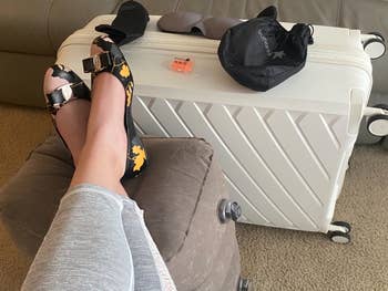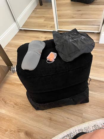 We hope you love our recommendations! While every product is independently chosen by our editors, BuzzFeed and our publishing partners may collect a share of sales or other compensation from the links on this page. You can read more about how our affiliate partnerships work in our Editorial Standards & Ethics Guide. This inflatable foot rest, phone mount, and drink caddy are bringing business-class vibes to your economy seat. This contraption provides 360-degree support thanks to a wraparound design and clips that connect it to your seat's headrest. Promising review: "Just took a 15-hour flight with this travel pillow, and this was the best travel pillow by far. I've used inflatable and memory foam neck pillows before; the major problem is that they don't secure your head and torso, so either your muscles have to hold up your body, or your head and torso will end up swinging around, and both are disruptive to sleep. With this travel pillow, my muscles can relax, and the padded eye mask will hold up my head and torso. One minor downside is that the pillow needs to be mounted on your seat's headrest; if someone bumps your seat, it can be disruptive, but this rarely happens. Its size and weight are also much less than memory foam neck pillows, and I don't have to bring an extra eye mask, so it is very travel-friendly." —Sky Get it from Amazon for $19.99 (available in nine colors). Check out a TikTok of the nausea relief inhaler in action. PS: Allclair is a small biz! Promising review: "Took this on my first cruise. Anytime that I started to feel woozy, I’d reach for it. I’m sure the required act of deep breathing helped a lot — and breathing in the fragrance of the essential oil is very calming and effective. Worked for me! Wonderful!" —Willy&Lilly Get a pack of two from Amazon for $12.99 (also available in a pack of four). Promising review: "I ordered these earplugs for a long plane trip to another country. The earplugs did the job. They were extremely useful in drowning out most of the noise. I wanted to hear a little for announcements. These did the job. They gave me enough silence to get some sleep but I could hear enough sound to take them out during announcements. If you are looking for earplugs that allow you enough quiet to sleep, these are the earplugs to purchase. They are worth the purchase." —Khitkhat Get it from Amazon for $24.95 (available in four colors). Promising reviews: "Took my toddler on an international 17+ hour trip and I must say this was a great addition for him and me. He had a mini 1st class flight and occasionally I also was able to leverage it to put my feet up." —Nicole Ashley "Must have for long flights. My 1.5-year-old slept well on this inflatable airplane bed on an international flight. It fit nicely on the economy seat and was sturdy yet comfortable. My toddler slept for hours on it so I could get some rest too. I also like that it’s easy to set up and when packed up it is very compact so won’t take up much space in my carry on luggage." —Amy Get it from Amazon for $64.99 (available in two colors and two styles). Read more about compression socks and long flights at Cleveland Clinic. Promising review: "Nice socks! I purchased these for an overseas trip. I like the feel of them. The fabric is nice and soft, not too thick or thin. The socks are a good length for me and I like the color. The socks come with instructions of how to put on / take off. Also, directions on how to 'acclimate' to them by wearing them for shorter periods of time. They are very comfortable/supportive, stay in place while walking around and hug the right places (calves and foot arch). They also came with a little travel pouch, which is helpful for my upcoming travels. I definitely recommend these compression socks." —L. Alexander Get a set from Amazon for $14.99 (available in eight color combos and sizes S–XXL). Promising review: "I love this thing! I always hated putting things in the seat pocket on planes. It was easy for things to get lost in there or sometimes the pockets were pretty tight. This thing was amazing. I was able to get everything out of my bag that I might need during the flight and had easy access to it all. It was so much better than having to pull my bag out constantly to get stuff I needed. It also folds up nicely so it doesn’t take up much space in your bag." —Corey Perilogics is a small business creating hyper-functional tool holsters and bags for carrying your stuff on the go. Promising review: "I bought this nifty gadget about six months ago for a multi-leg, ultra-long-haul trip, and it more than held up the entire duration. I was able to finagle it to fit the tray tables on different planes, and like others, I find the height just nice when clamped onto a stowed tray table. It also works on my roller carry-on handle during layovers. However, I find myself using it a lot outside of travel too! Work-wise, I've clamped it onto my office desk shelving to hold my phone at eye level beside my computer. At home, I simply clamped it to a deck of cards, and it turns into a versatile stand that I can place on any flat surface. Heck, I've been using it to hold my phone comfortably at eye level while watching videos in bed. It's extremely well built, and I find myself fidgeting with it all the time. Thus far it still feels solid, and I don't anticipate breaking it any time soon. Even if it does break, I'll be happy to buy another one or two of it!" —Earendil Get it from Amazon for $13.99+ (available in seven colors and packs of two). Promising review: "I didn't buy this for the longest time thinking inflation would be annoying or it'd be too bulky — I finally ordered it and love it. It's very easy to inflate since it has the two inflation methods. Folds up smaller than our travel pillows. It's great for travel in car and planes, and our kid likes sitting on it at home too. Recommended." —D Get it from Amazon for $21.96+ (available in four